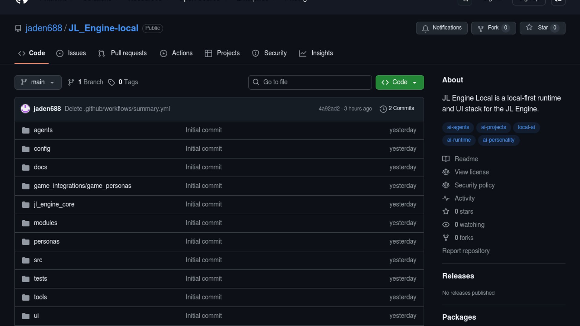 JL Engine Local is a new open-source, local-first agent runtime shared via Reddit with code on GitHub. It assembles personas, behavior states, tools, and backend routing at runtime, with CLI/API/UI surfaces for running agent workflows against local or cloud model providers.