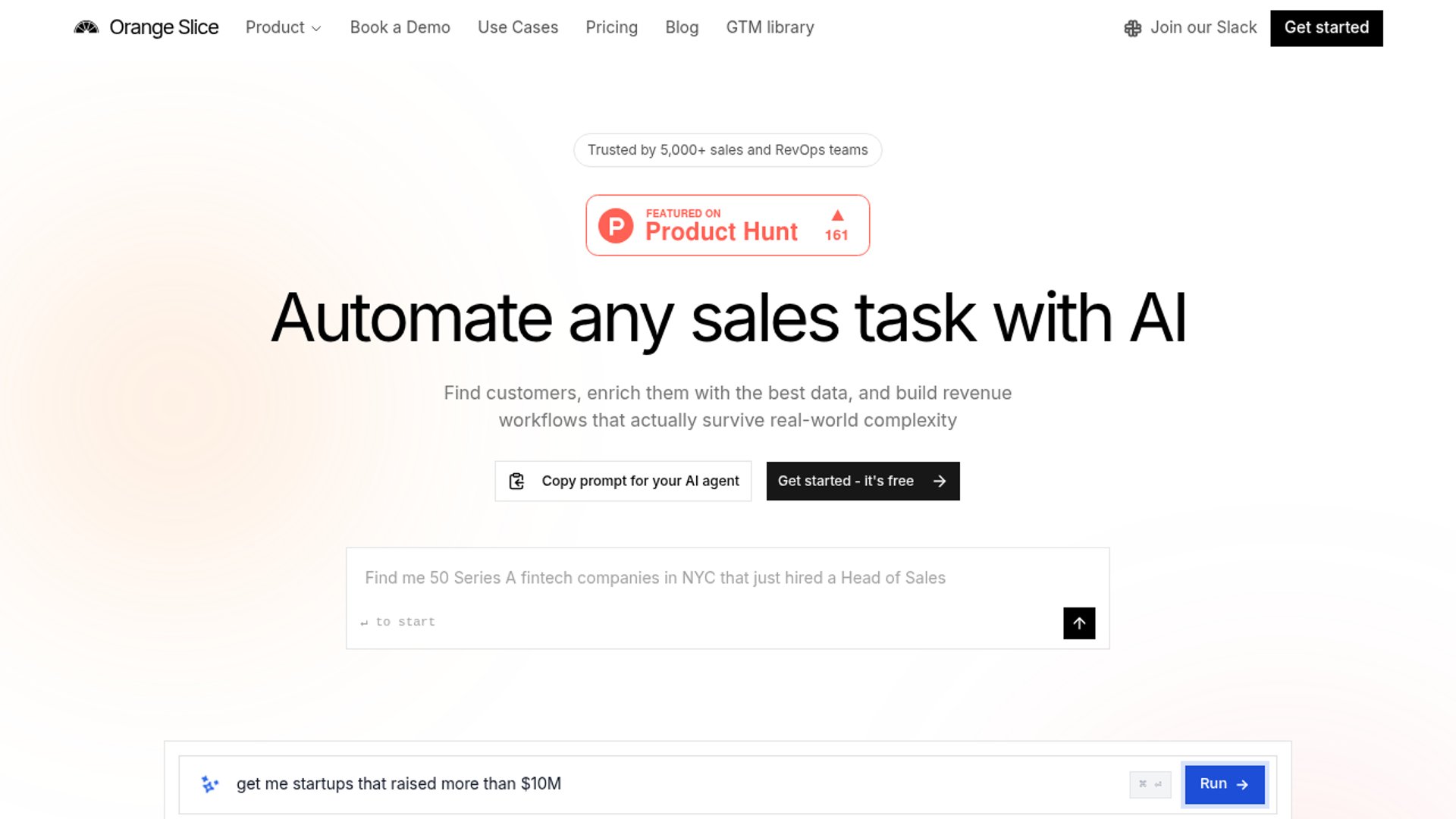 Orange Slice is an AI sales and GTM platform that turns plain-English prompts into prospecting, enrichment, qualification, and workflow execution. It positions itself less as a generic no-code builder and more as a “Claude Code for GTM” layer for teams that want flexible automation without stitching together a pile of tools.