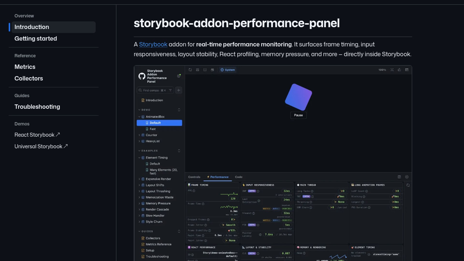 GitHub’s open-source Storybook Performance Panel brings a live performance dashboard directly into Storybook, exposing frame timing, INP, CLS, long tasks, memory pressure, and React profiling while components are still in development. It supports React out of the box plus a universal entry for non-React Storybook setups, making frontend performance debugging much more shift-left.