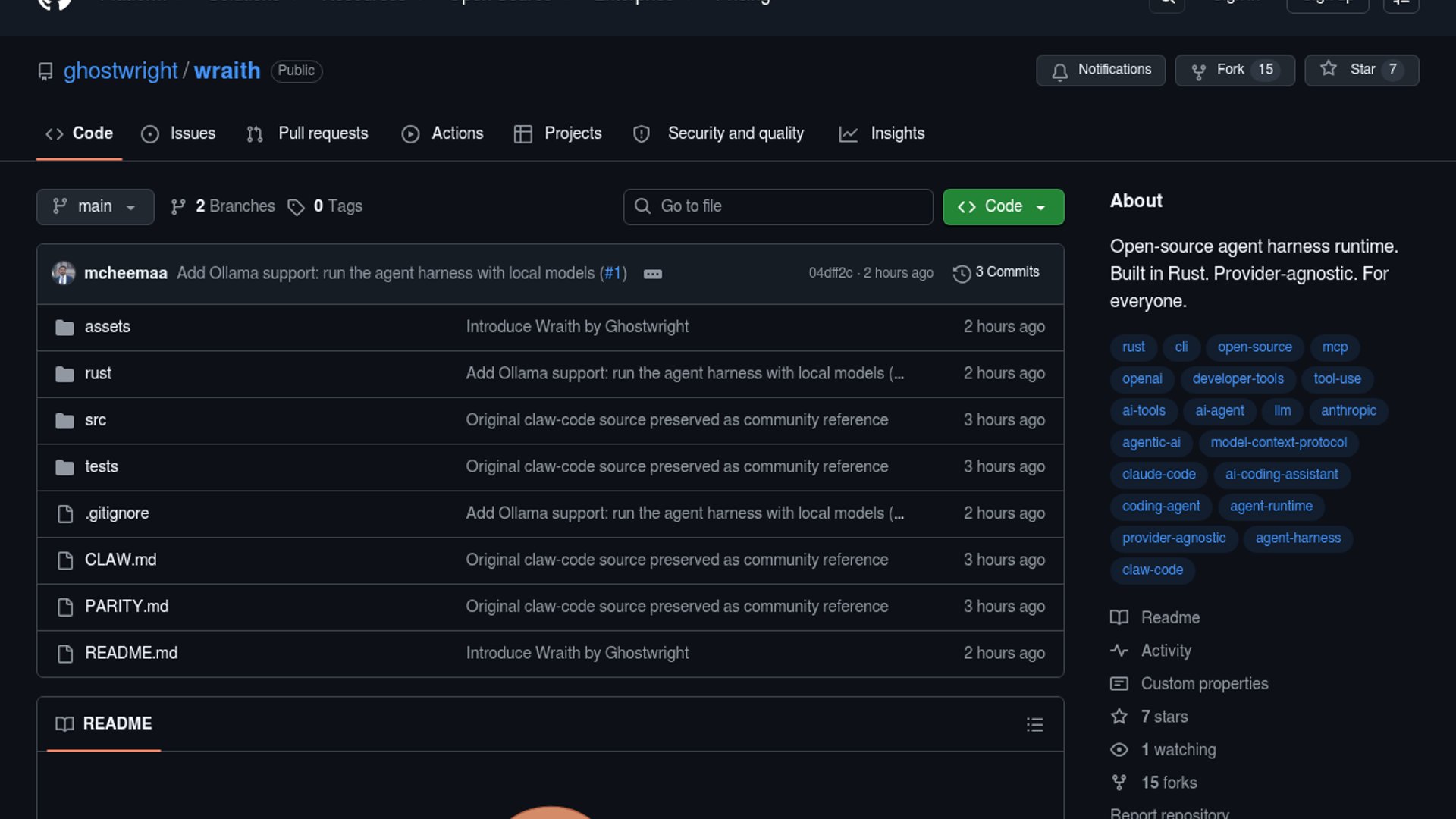 Wraith is an open-source Rust agent harness that rehosts the claw-code codebase after its source became difficult to clone or fork. The project’s stated goal is to make the harness work across Claude, OpenAI, Gemini, and local models.