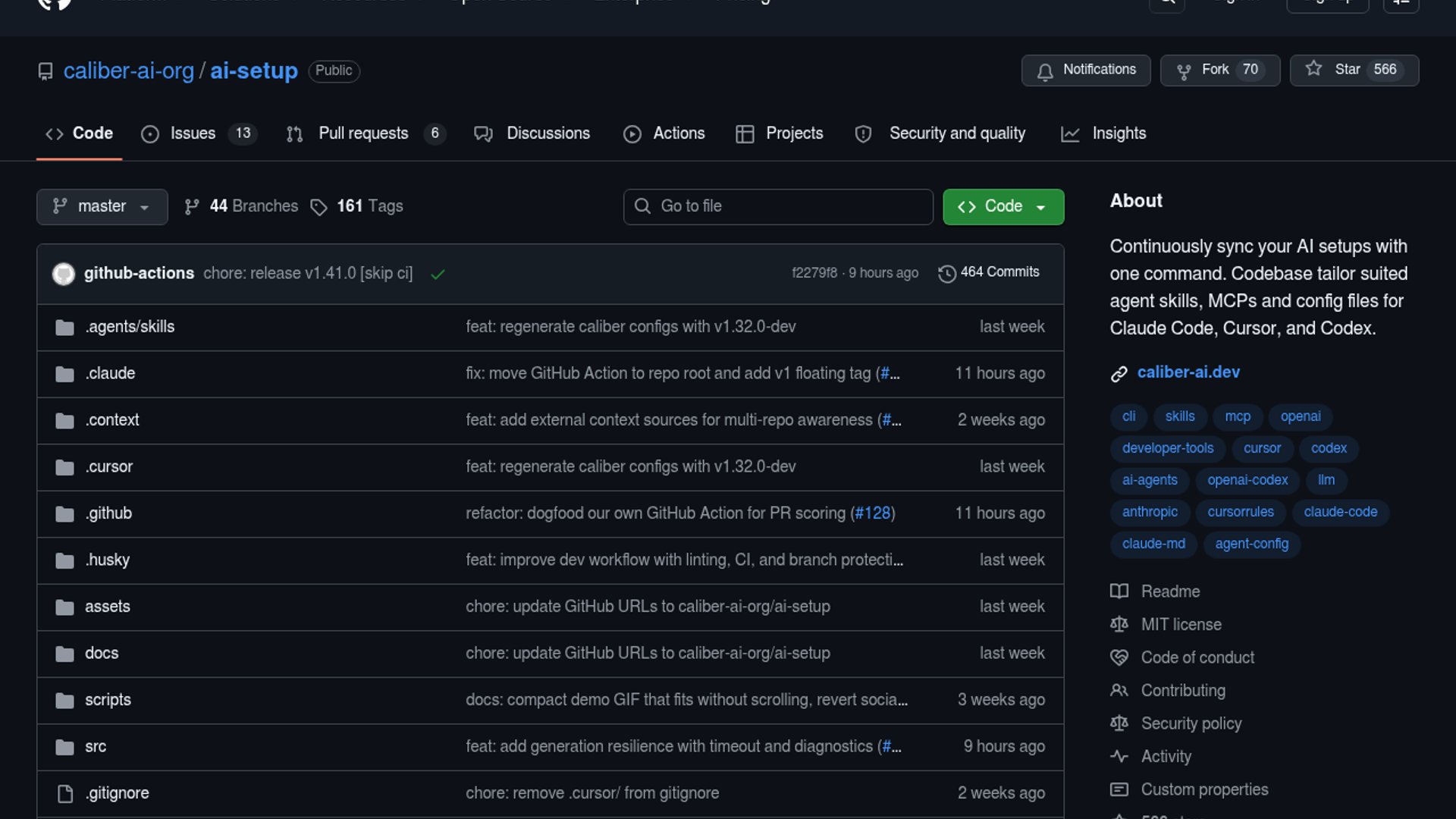 Caliber is an open-source CLI tool that synchronizes AI agent configurations with your codebase to eliminate "config drift." It automatically generates and maintains tailored instructions for Claude Code, Cursor, and other agents by scanning project dependencies and structure in real-time.