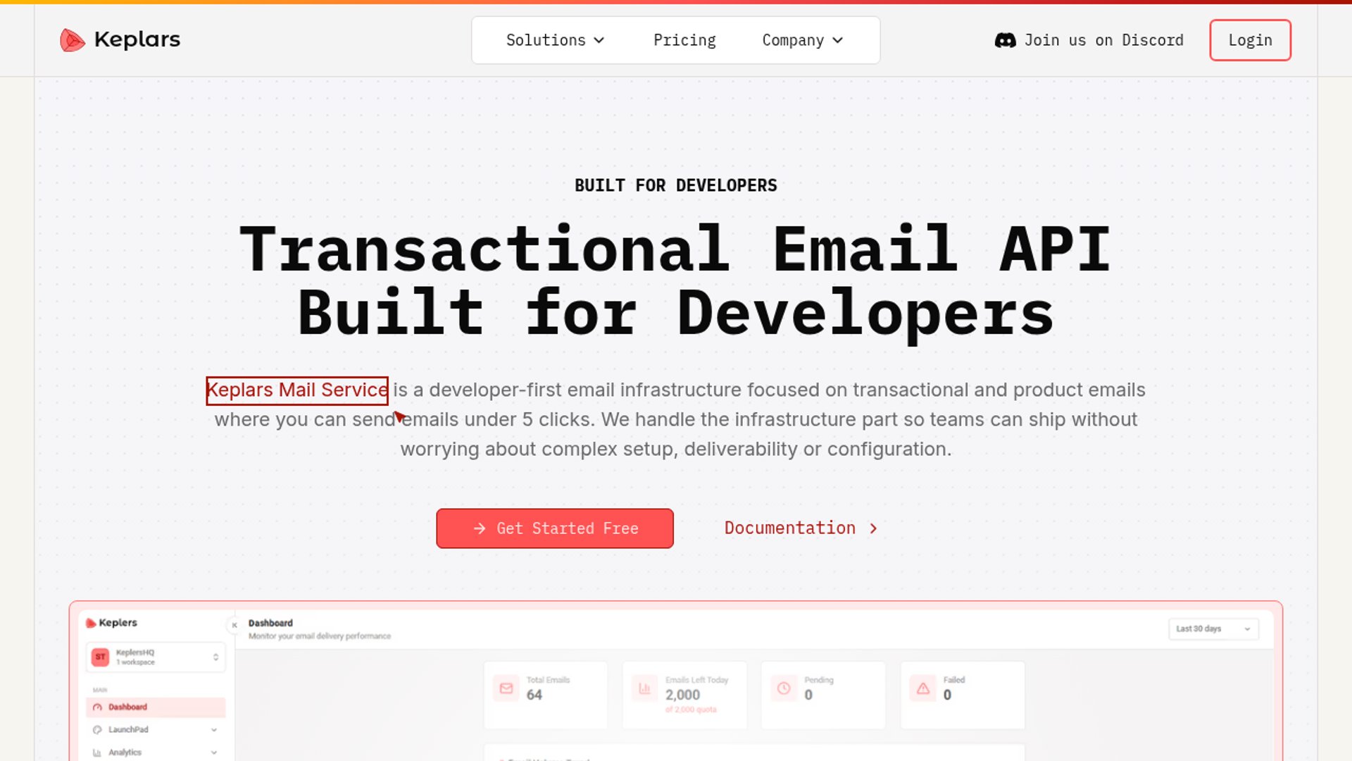 Keplars is a developer-first transactional email platform focused on delivery visibility, sandbox testing, and low-friction setup. It promises teams can send email in under five clicks with usage-based pricing and production-grade deliverability tooling.
