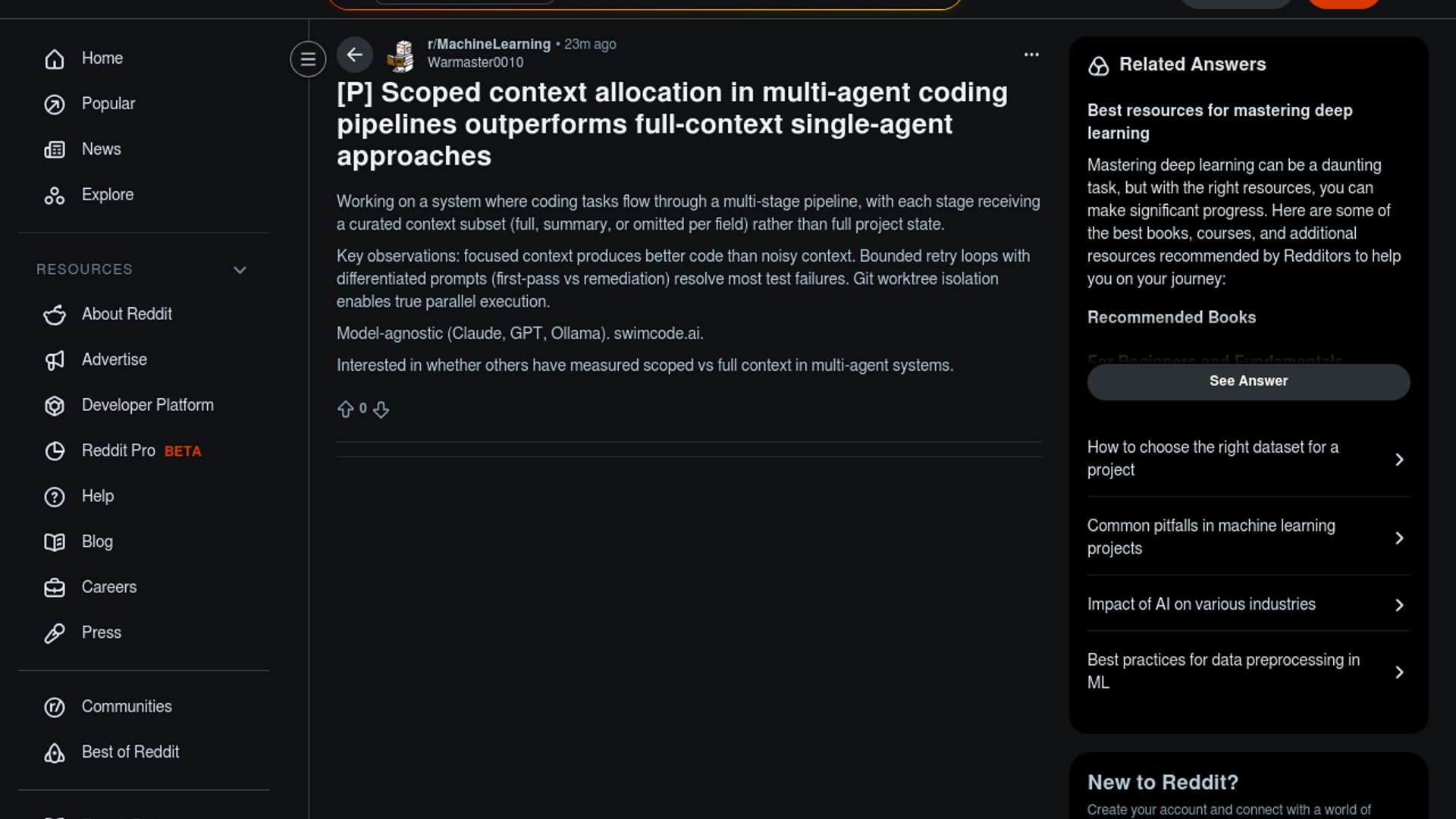 Swim Code is pitching a desktop AI coding workflow that moves tasks through a multi-agent pipeline instead of handing one model the entire project state at once. In a Reddit project post, the team argues that stage-specific context, bounded retry loops, and Git worktree isolation produce cleaner code and more reliable remediation than full-context single-agent setups.