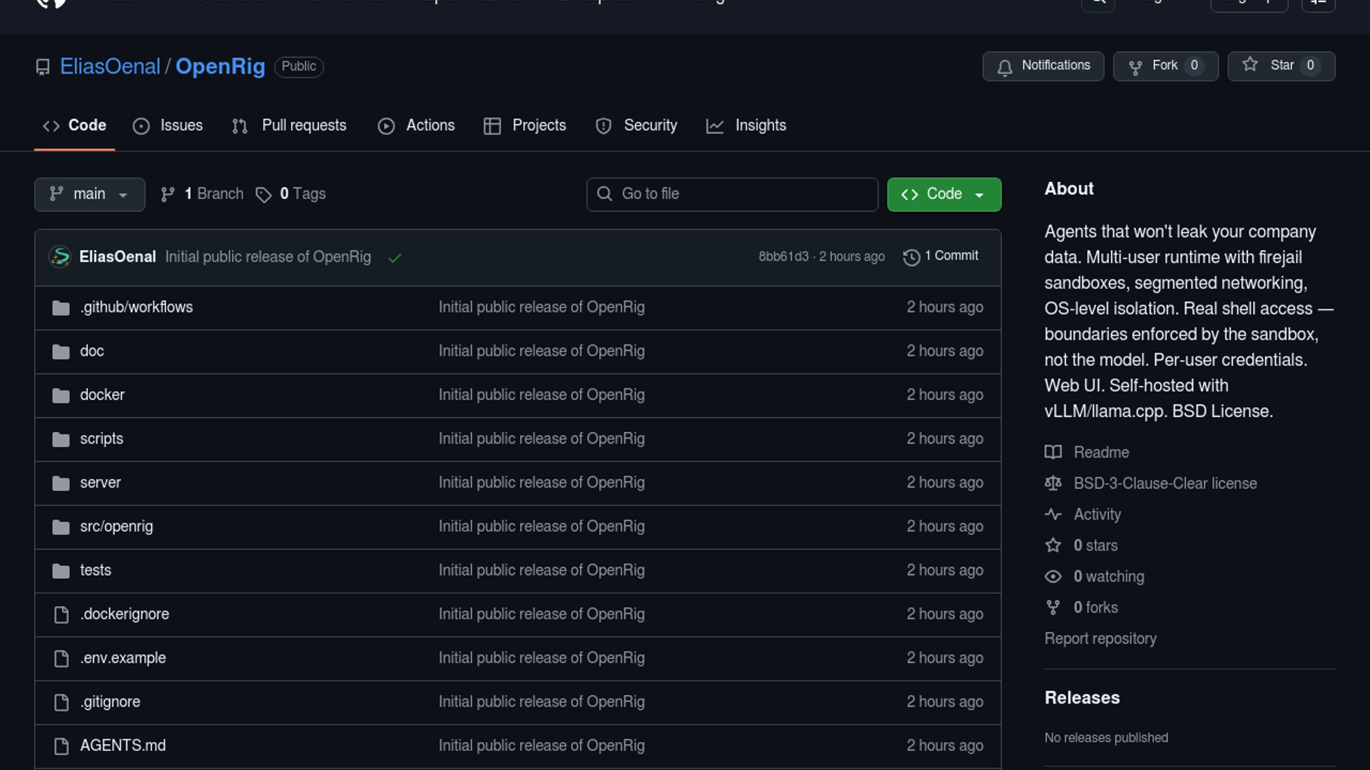 OpenRig is a new self-hosted multi-user agent runtime that uses per-user Unix accounts, per-session firejail sandboxes, and segmented networking to give agents real shell access without turning the LLM into the security boundary. It targets teams running agents against internal systems with OpenAI-compatible backends like vLLM and llama.cpp while keeping data and telemetry inside their own infrastructure.