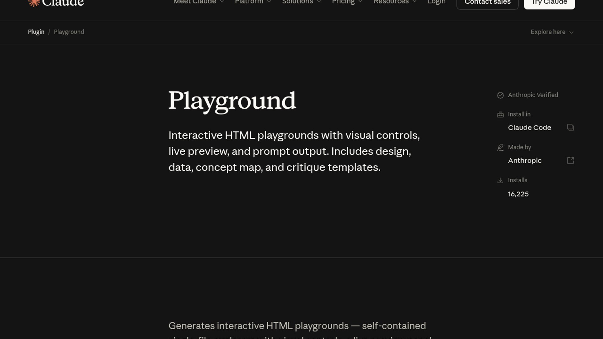Playground is Anthropic’s official Claude plugin for generating self-contained HTML explorers with controls, live preview, presets, and copy-ready prompt output. It turns fuzzy prompt iteration into a visual workflow developers can use for UI design, data exploration, concept mapping, and review tasks.