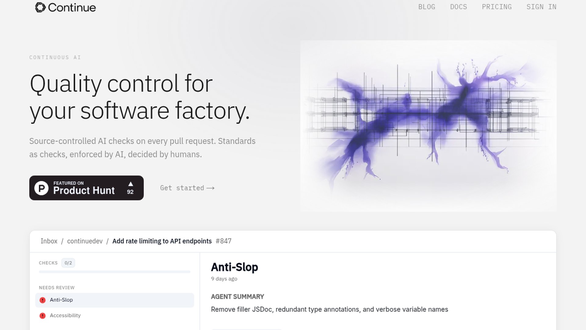 Continue launched Mission Control as a quality-control layer for AI-assisted software teams, running source-controlled AI checks on every GitHub pull request. Teams define standards in markdown and get automated enforcement with suggested fixes instead of relying only on manual review.