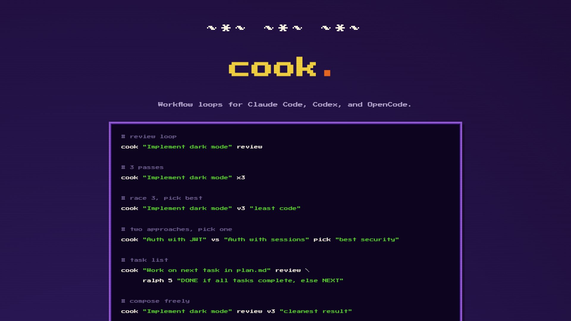 - –Supporting Claude Code, Codex, and OpenCode makes Cook more portable than a single-vendor wrapper.