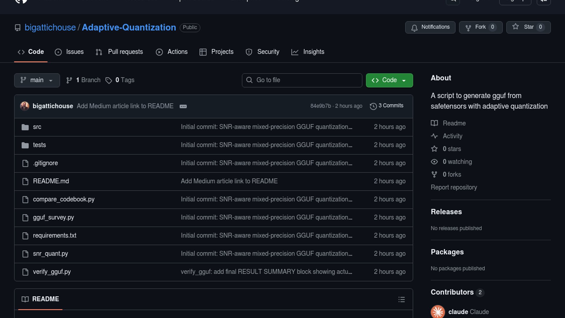 - –`verify_gguf.py` closes the loop with post-quantization validation so users know the achieved SNR, not just the planned one