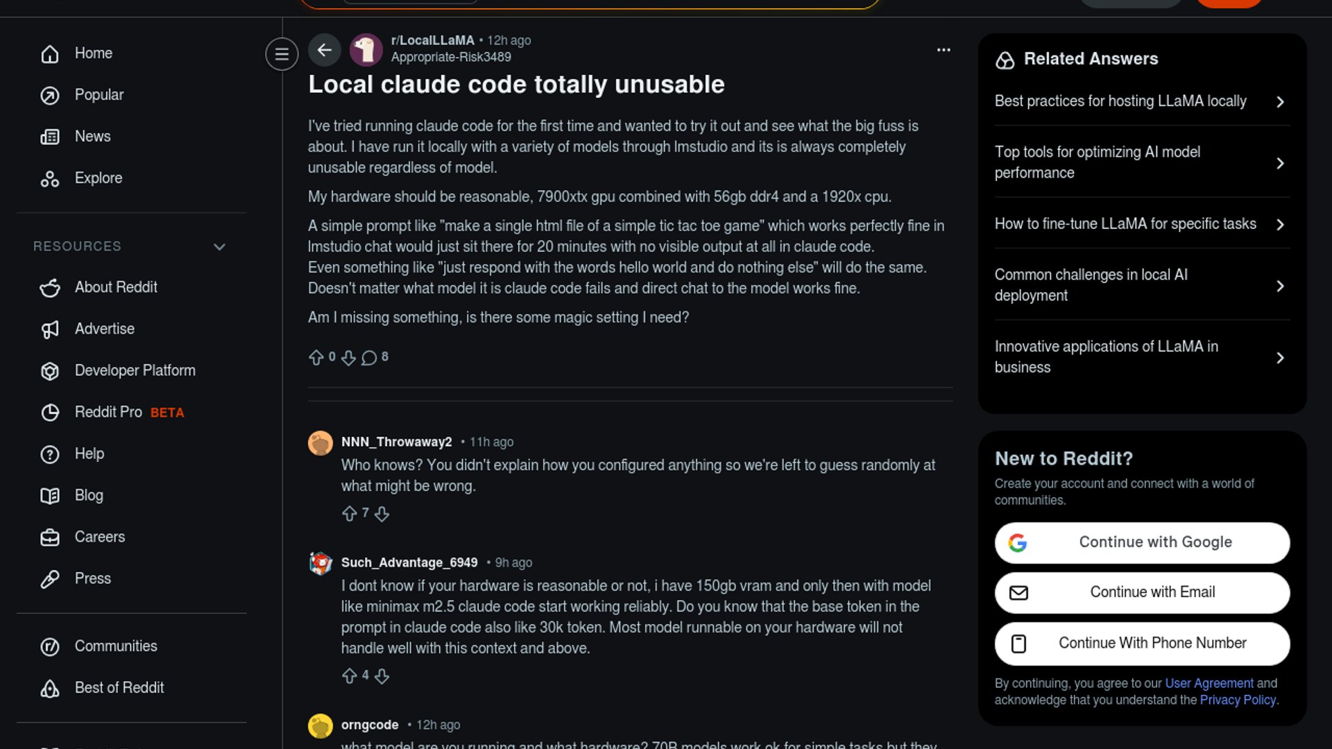 - –The Reddit thread itself points to the likely failure modes: backend incompatibility, insufficient context window, or network/auth assumptions inside Claude Code.