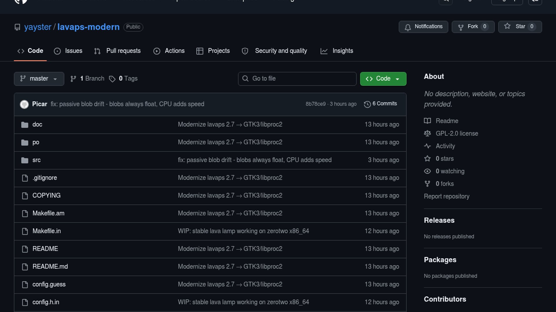 LavaPS Modern revives John Heidemann’s 2004 Linux process monitor by replacing the dead GNOME2/libgnomecanvas rendering layer with GTK3 and Cairo while keeping the original blob physics, process scanning, and color behavior intact. The result is a nostalgic system monitor that shows every running process as a floating bubble, sized by memory use and rising speed by CPU load, now running on a Raspberry Pi 5 robot car as part of the Picar project.