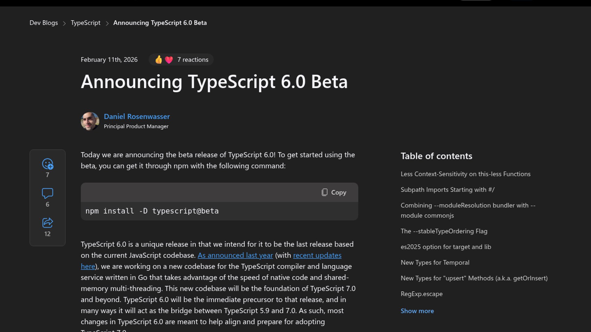 - –The bigger signal comes from Microsoft's parallel native-tooling push, which frames TypeScript's future around latency, scale, and IDE responsiveness.