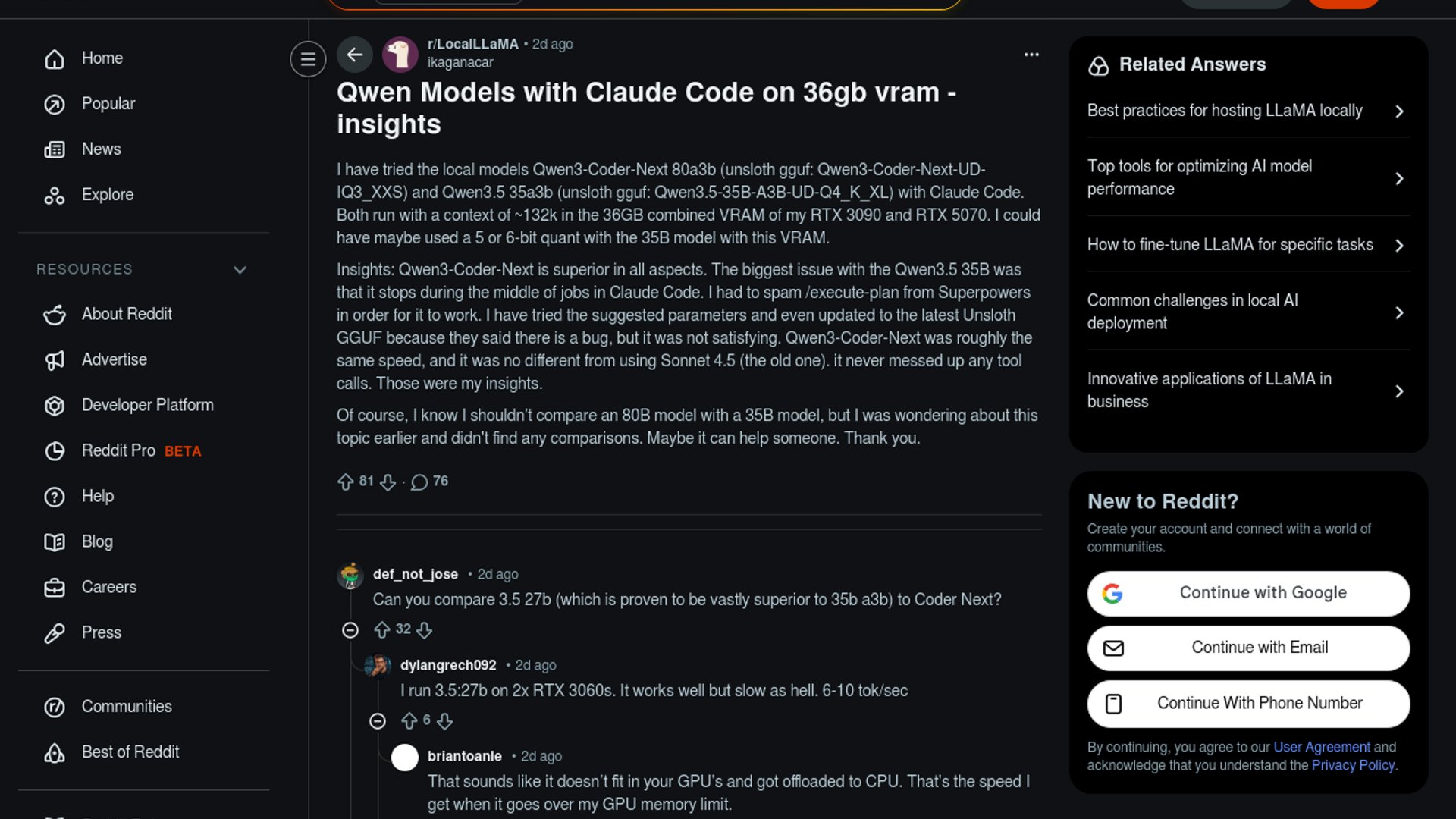 - –The key result is reliability, not speed: the poster says Qwen3-Coder-Next stayed stable through Claude Code jobs while Qwen3.5 35B often stopped in the middle.