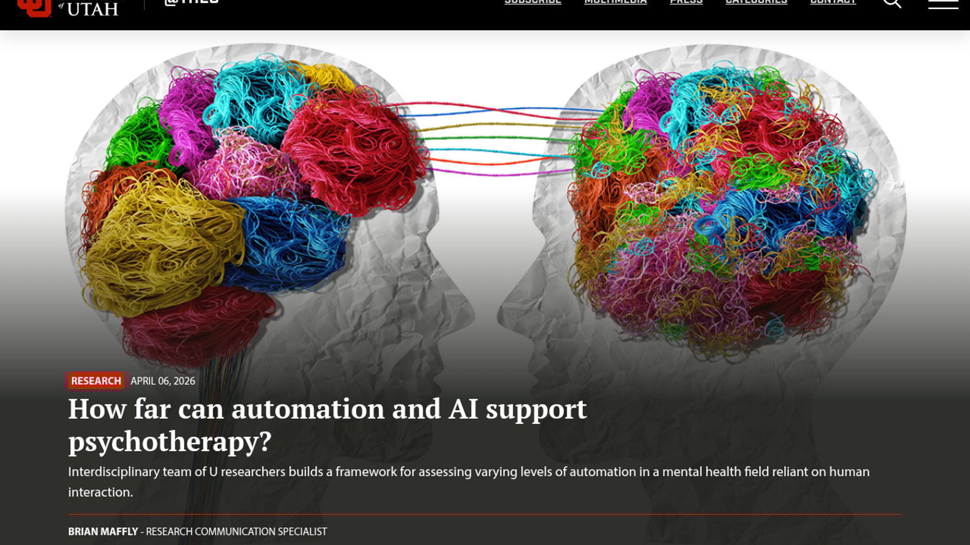 University of Utah researchers published a four-level taxonomy classifying AI's role in mental health care, ranging from scripted chatbots to autonomous therapy agents. The framework helps health systems evaluate the risks and clinical utility of deploying LLMs in therapeutic settings.