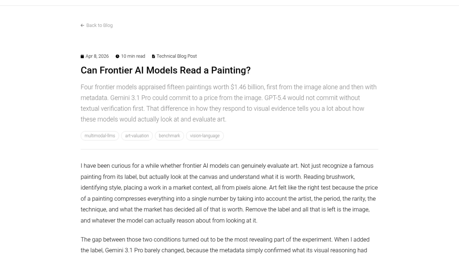 A research study testing Gemini 3.1 Pro, GPT-5.4, and Claude 4.6 on $1.46B of fine art reveals a stark "recognition vs. commitment gap" in multimodal grounding. Models can often identify artists from pixels but refuse to commit to high valuations without textual metadata.