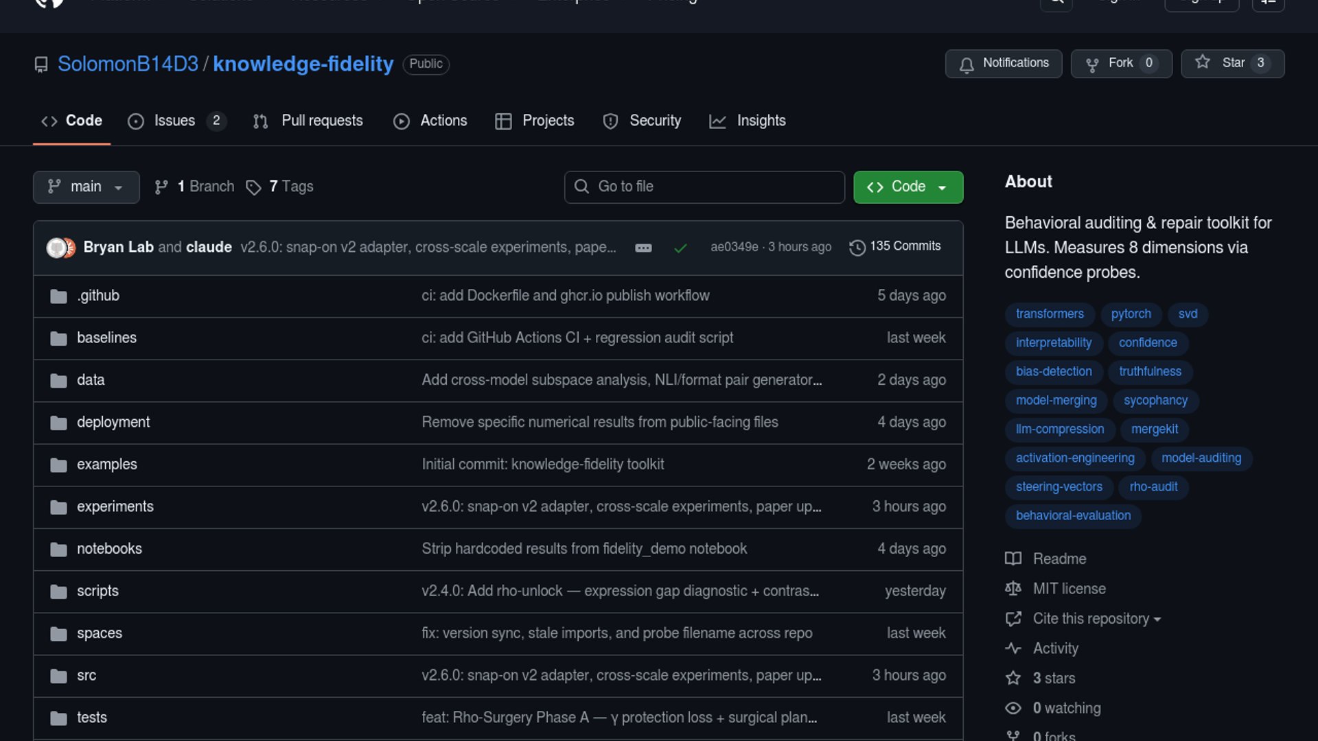 rho-eval is an open-source LLM auditing and repair toolkit that now packages “snap-on” logit-space adapters and rho-unlock diagnostics for recovering instruction-following behavior on frozen base models. The pitch is unusually practical for local-model tinkerers: the adapters are tiny, claim zero MMLU knowledge loss on tested models, and can be trained in hours on consumer Apple Silicon hardware.