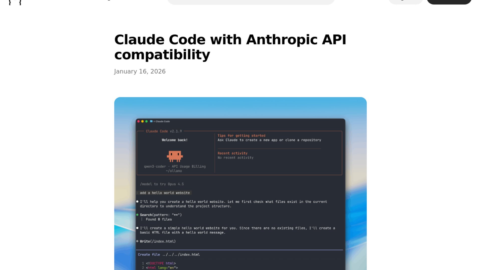 - –The setup is minimal: point `ANTHROPIC_BASE_URL` at `http://localhost:11434`, use `ollama` as the token, and Claude Code can target Ollama-served models.