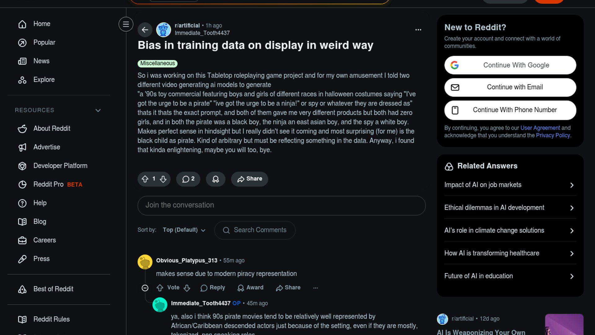 A Reddit user says they prompted two different video generation models to make a ’90s toy commercial with boys and girls of different races in Halloween costumes, each saying a different catchphrase. Both models ignored the requested girls and instead produced the same kind of casting pattern: a Black boy as the pirate, an East Asian boy as the ninja, and a white boy as the spy. The post is basically a small but vivid demo of how model outputs can mirror stereotyped role associations from training data in ways that feel obvious only after the fact.