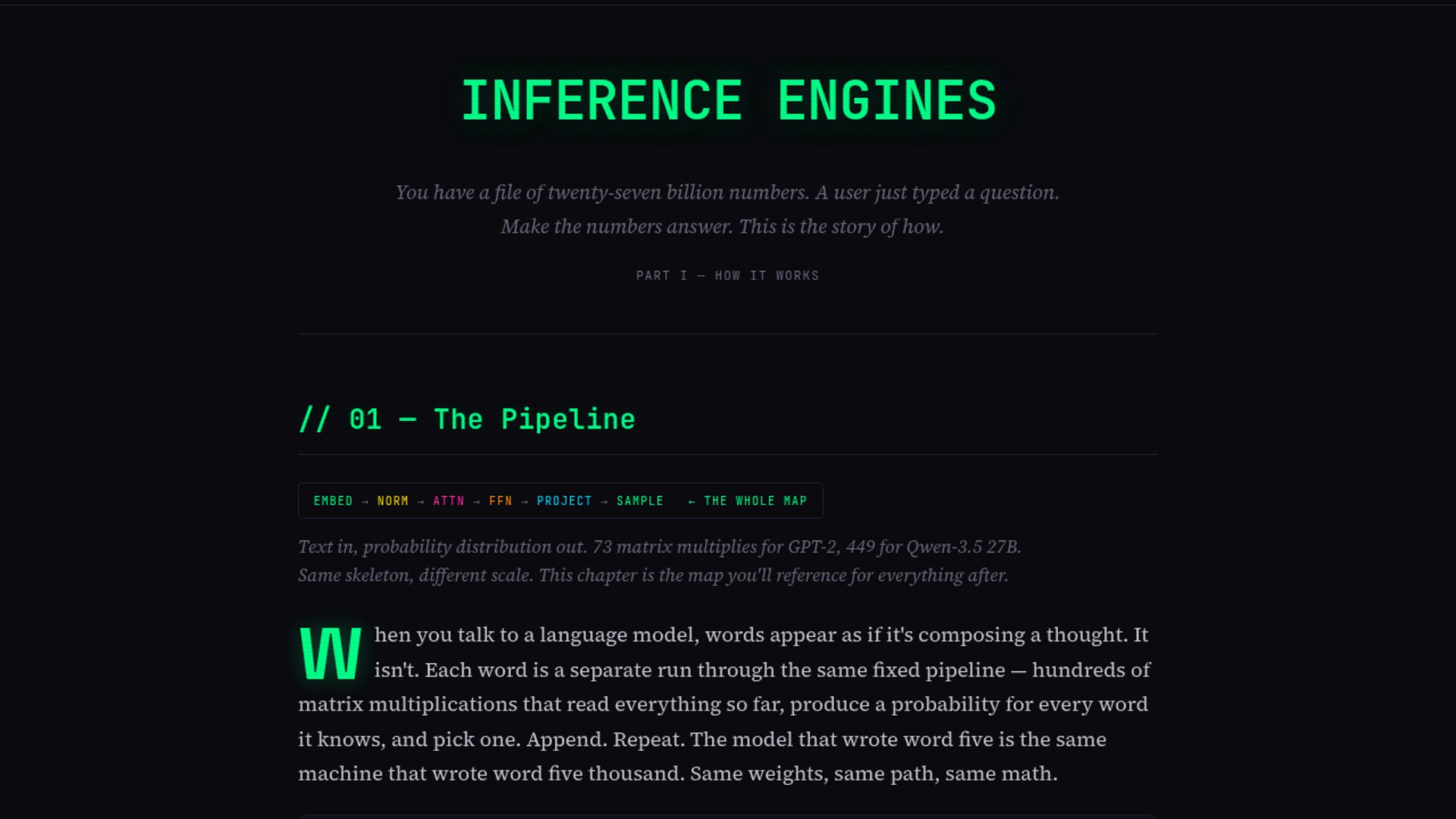 A visual, beginner-friendly walkthrough of how a token moves from text to logits through embeddings, attention, FFNs, and sampling. It reads like a builder's guide for anyone optimizing inference engines and wanting the why behind the usual speed tricks.