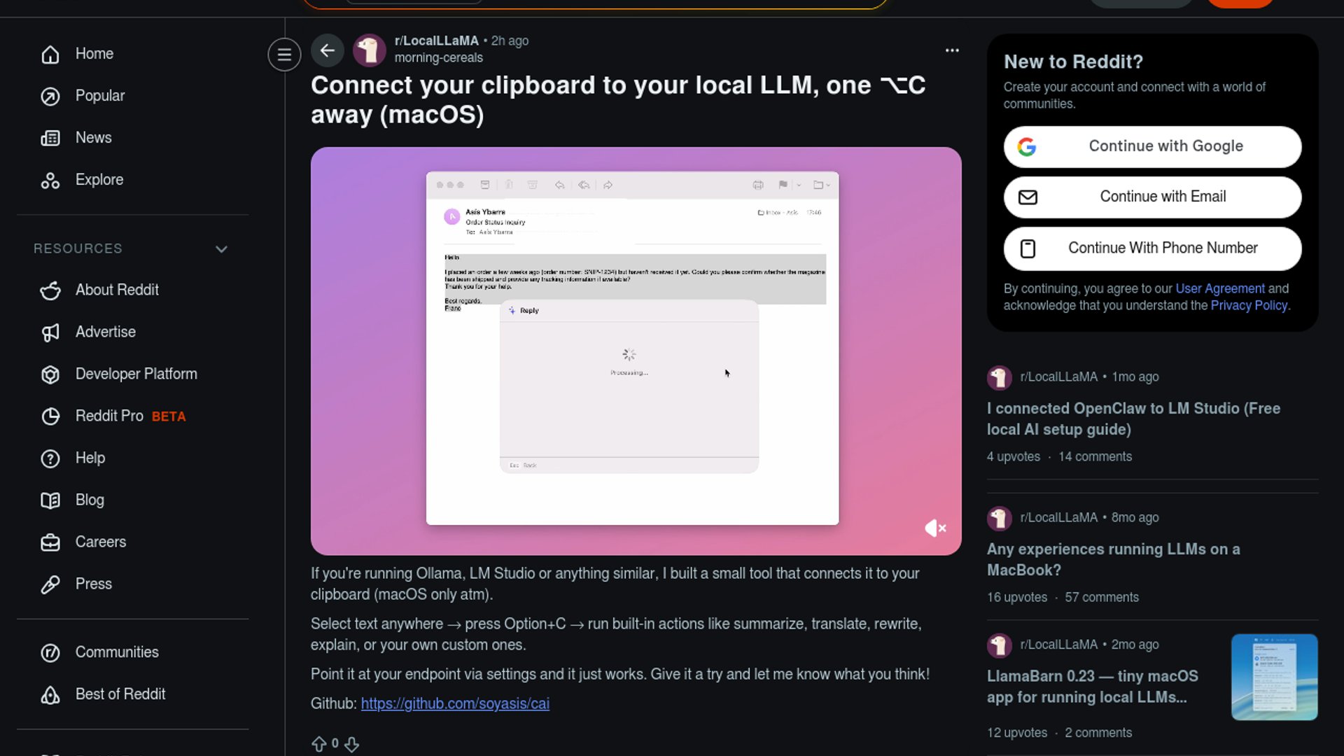 - –The core idea is strong because `⌥C` works anywhere, which makes local LLMs feel more like system infrastructure than a separate app