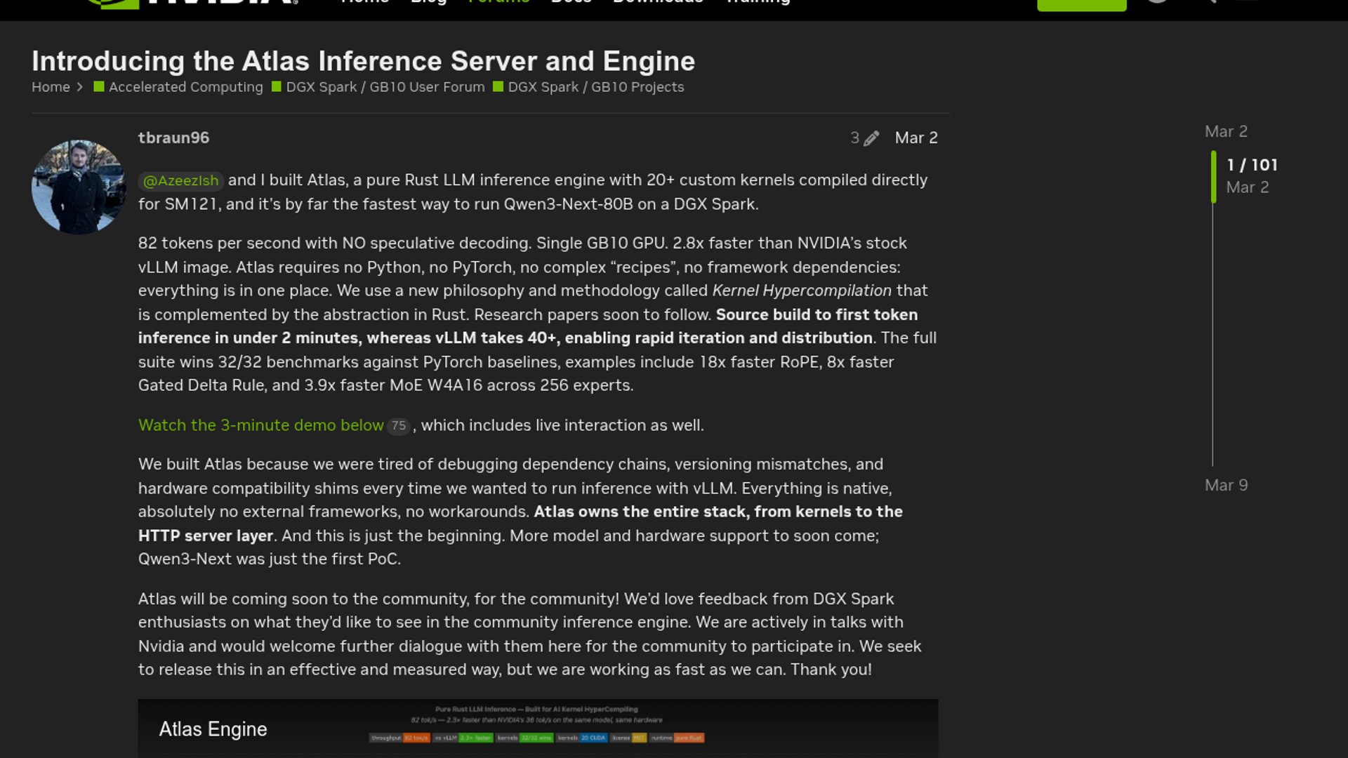 Atlas is interesting because it is not just another benchmark post — it is an attempt to own the full local inference stack on DGX Spark and turn niche hardware into a serious developer platform.
