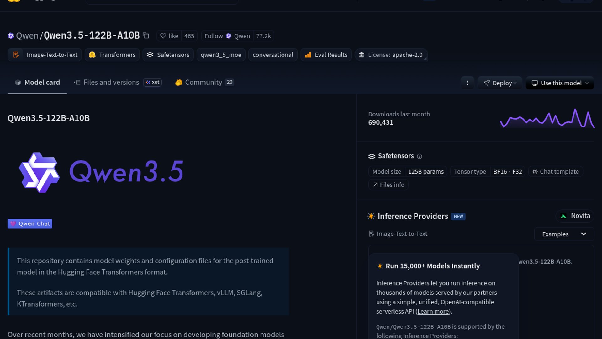 This reads less like a one-off curiosity and more like evidence that Qwen3.5’s 10B-active MoE design can make very large models practical on consumer Macs. The real story is the decode speed: 30.5 tps is not “desktop toy” territory for a 122B model.