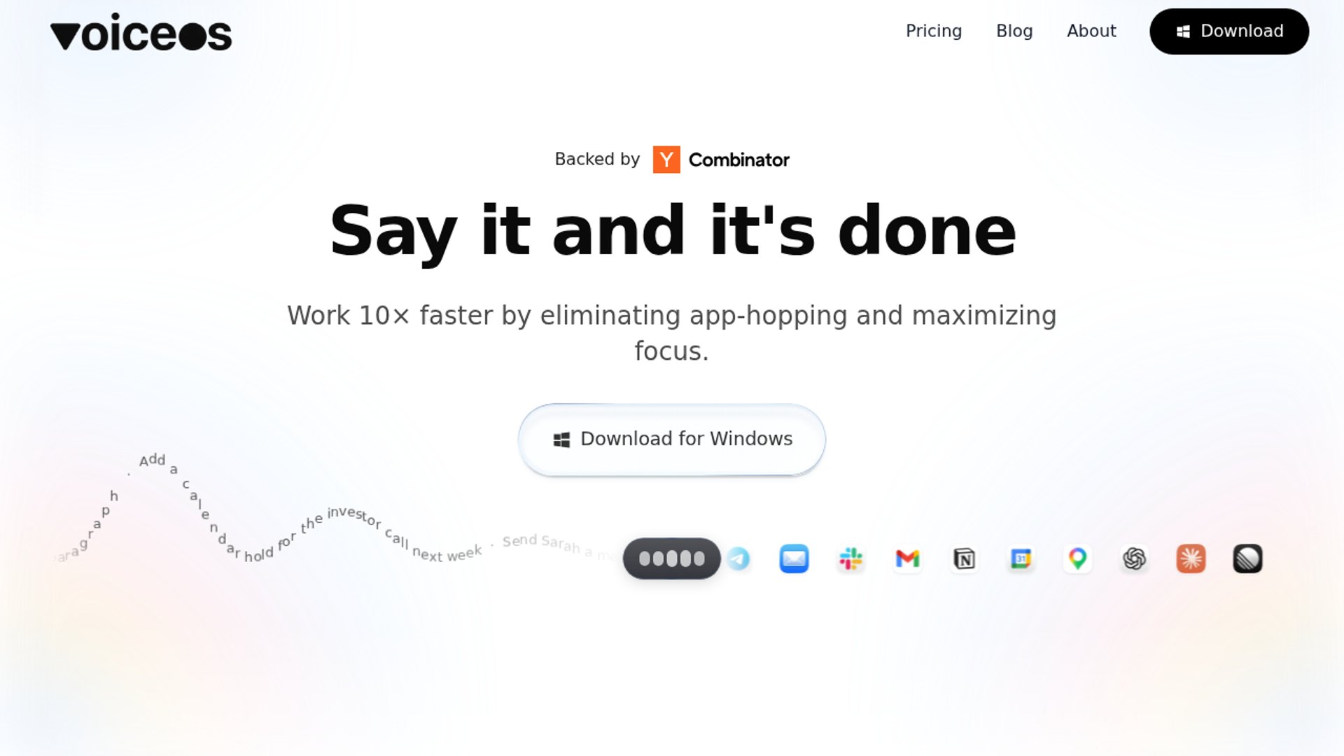 VoiceOS is a system-wide voice interface for Mac and Windows that turns spoken intent into executed workflows. The product positions itself as more than dictation: it can draft text, trigger app actions, and keep users in control with a quick confirmation step before execution. The launch messaging emphasizes speed, focus, and reducing the friction between deciding what to do and actually doing it on your computer.