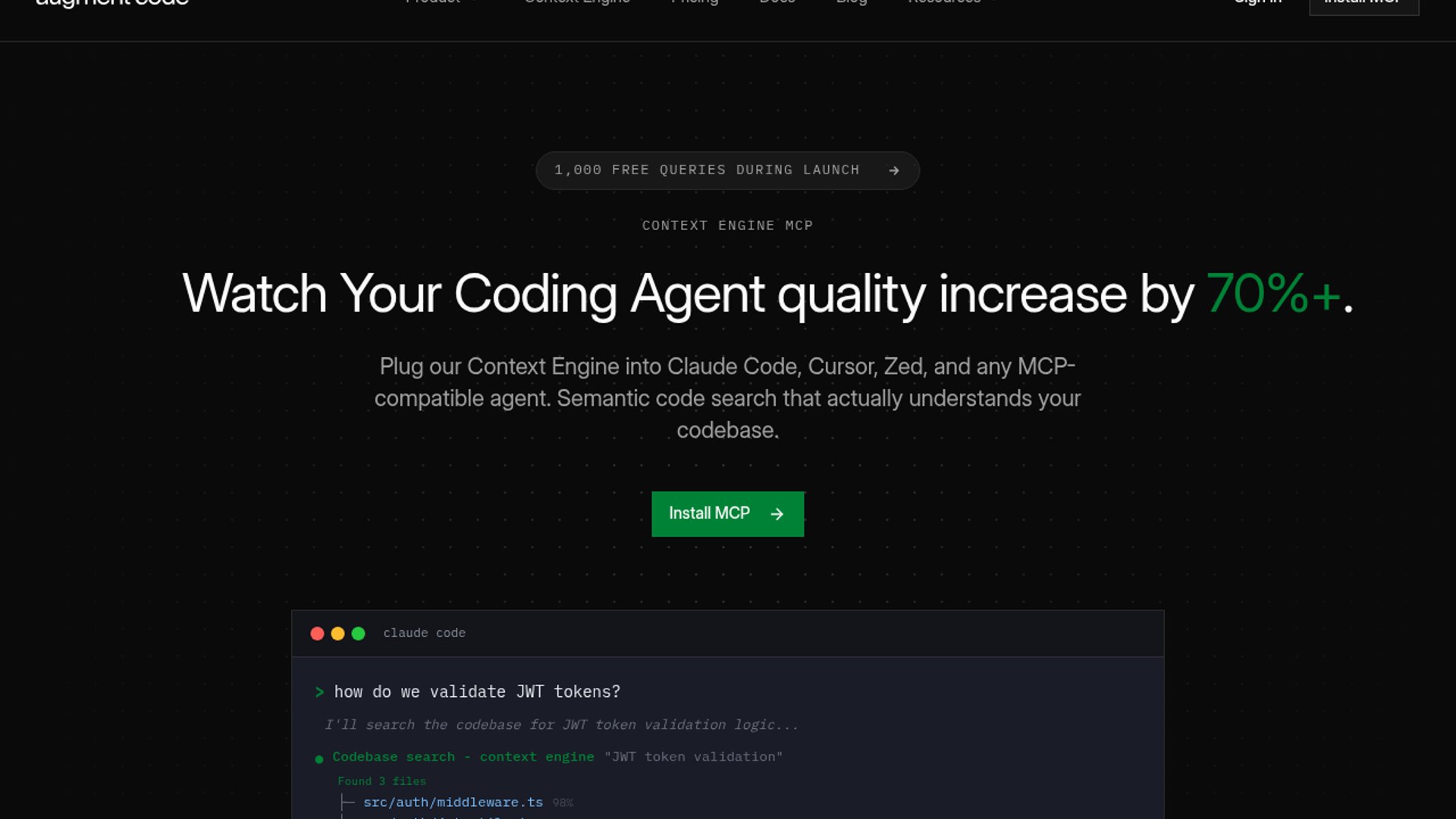 Augment has launched Context Engine MCP, a retrieval layer that brings its semantic code search to Claude Code, Cursor, Codex, Zed, GitHub Copilot, and other MCP clients. The pitch is simple: better code quality with less wandering, backed by 30–80% benchmark gains on 900 Elasticsearch PR attempts plus faster runs with fewer tokens.
