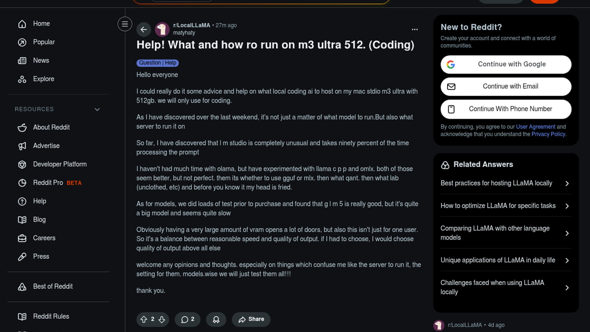 A developer with a 512GB Mac Studio M3 Ultra seeks community advice on optimizing local AI coding setups, highlighting confusion over fragmented server options like LM Studio, Ollama, and MLX. The discussion underscores the steep learning curve of balancing quantization formats and inference backends for large models.