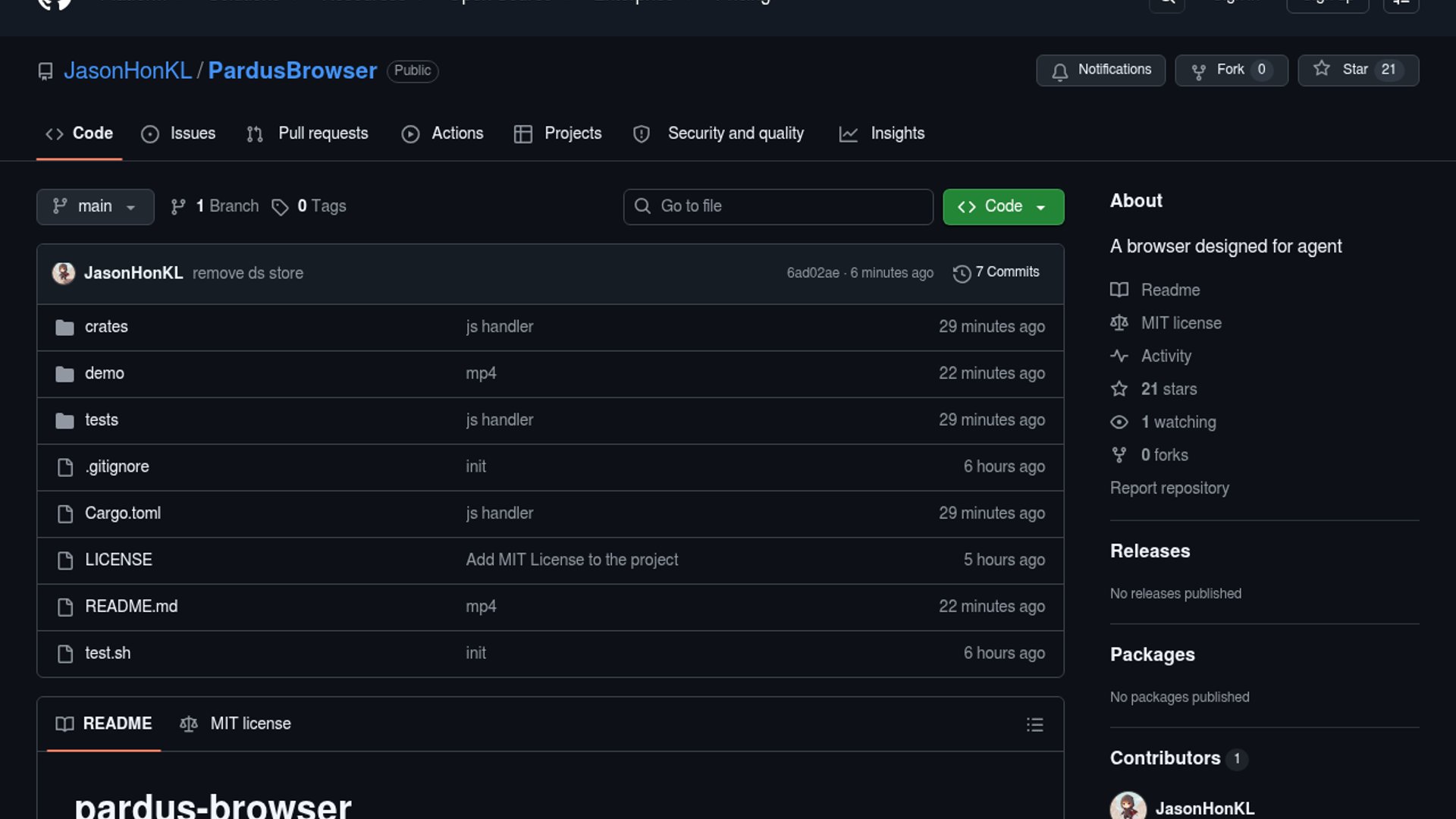 PardusBrowser is a Rust headless browser for AI agents that skips screenshots and exposes structured page state instead. It outputs semantic trees, navigation graphs, and action labels so agents can reason over links, forms, and interactive elements directly.
