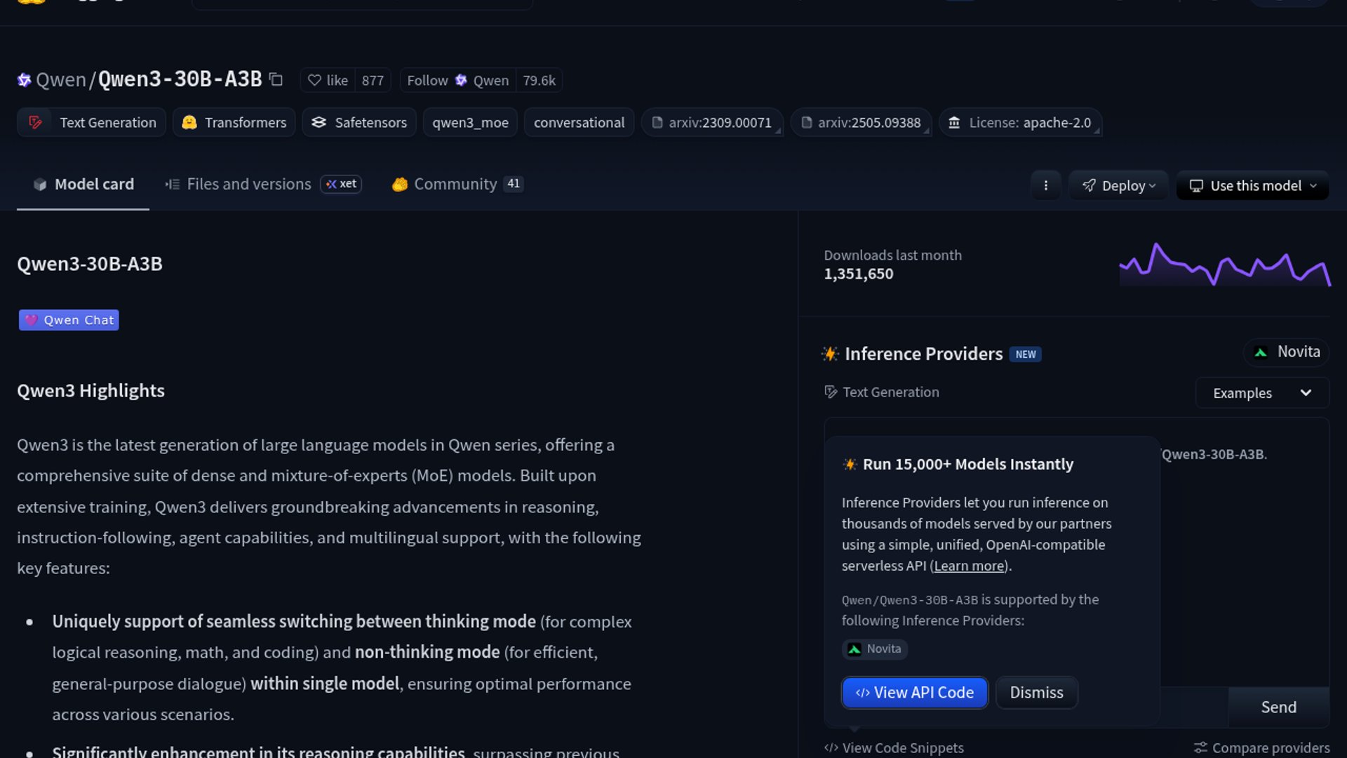 - –Qwen3-30B-A3B is a MoE model with 3.3B activated parameters, so it is more approachable than a dense 30B model, especially when quantized.