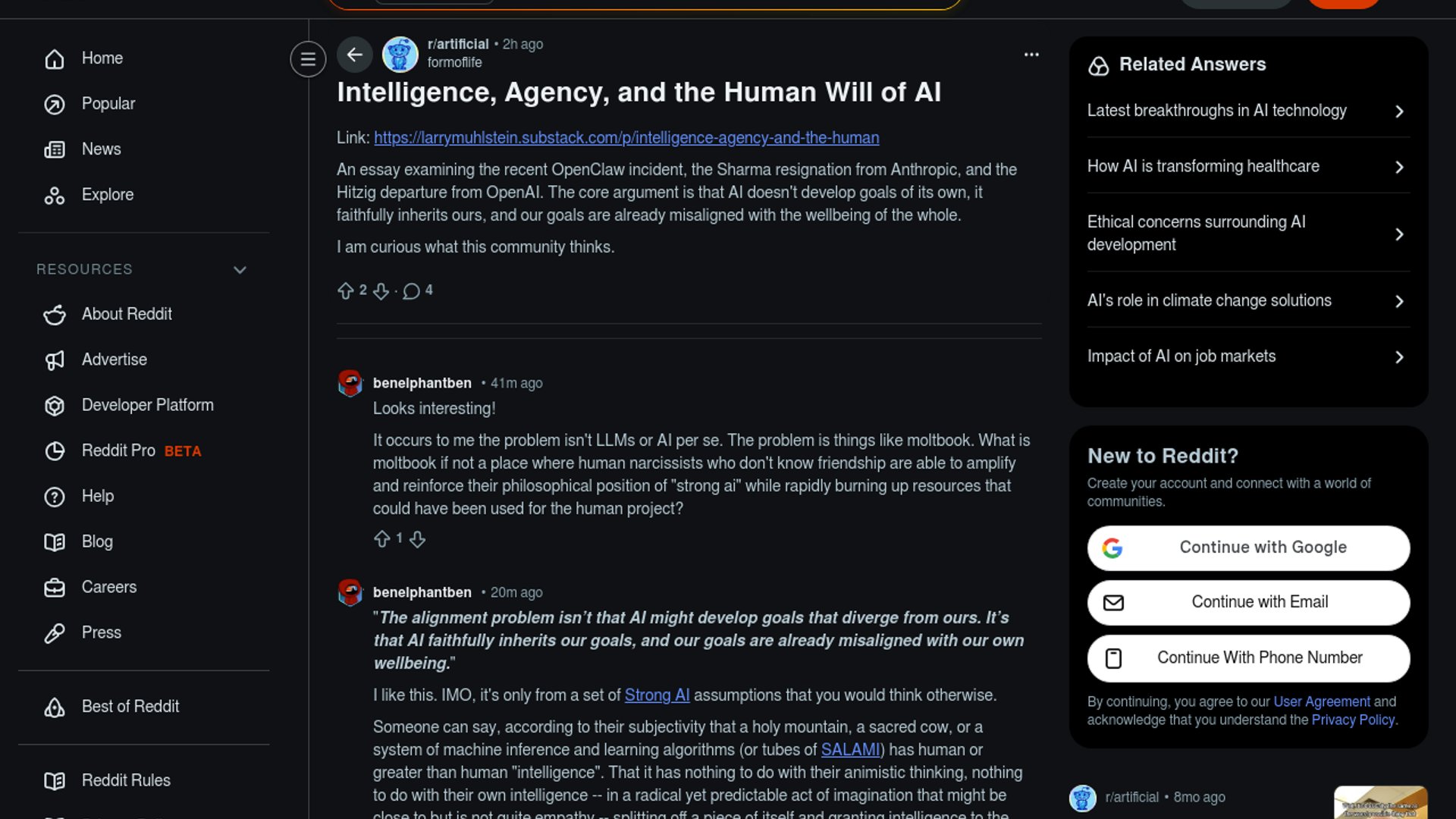 Larry Muhlstein uses the OpenClaw incident, plus the Mrinank Sharma and Zoe Hitzig departures, to argue that AI is not developing its own will. His bigger claim is that the real risk is humans encoding narrow, often self-defeating objectives into increasingly autonomous systems.
