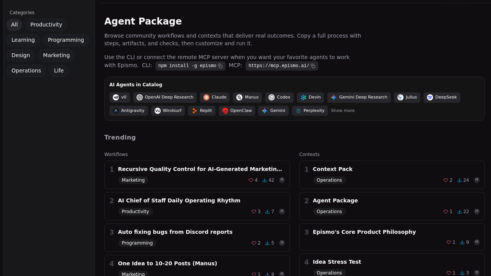 Epismo packages AI workflows, decisions, and review logic into reusable assets that can be shared and run across tools like Claude Code, ChatGPT, and Slack. The pitch is to stop rebuilding the same workflow every time a chat ends.