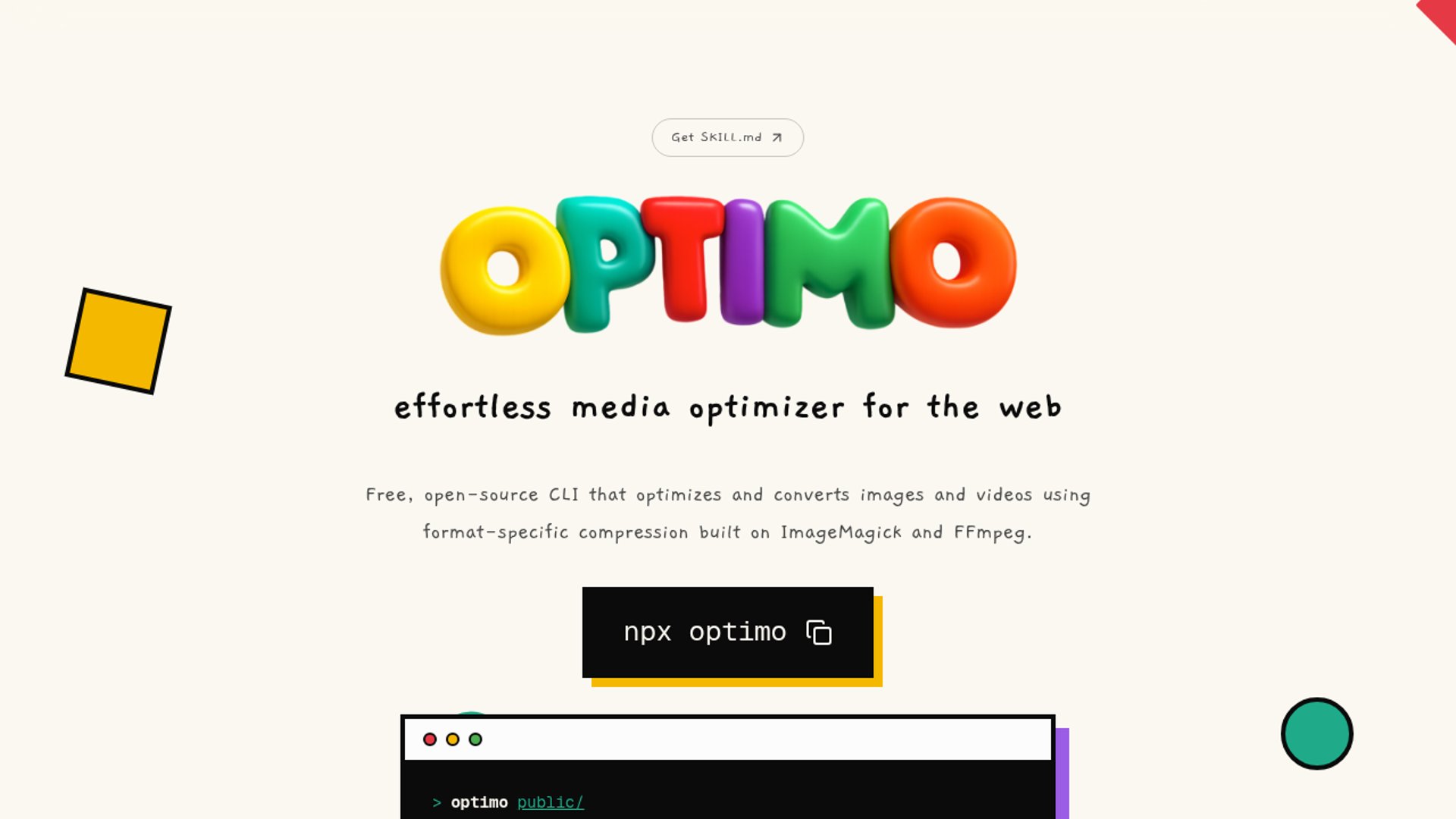 Optimo is a command-line tool designed for web developers to simplify and automate the optimization of images and videos. By wrapping powerful engines like ImageMagick and FFmpeg with sensible web-centric defaults, it provides a "lossless-first" approach to reducing file sizes without sacrificing quality.