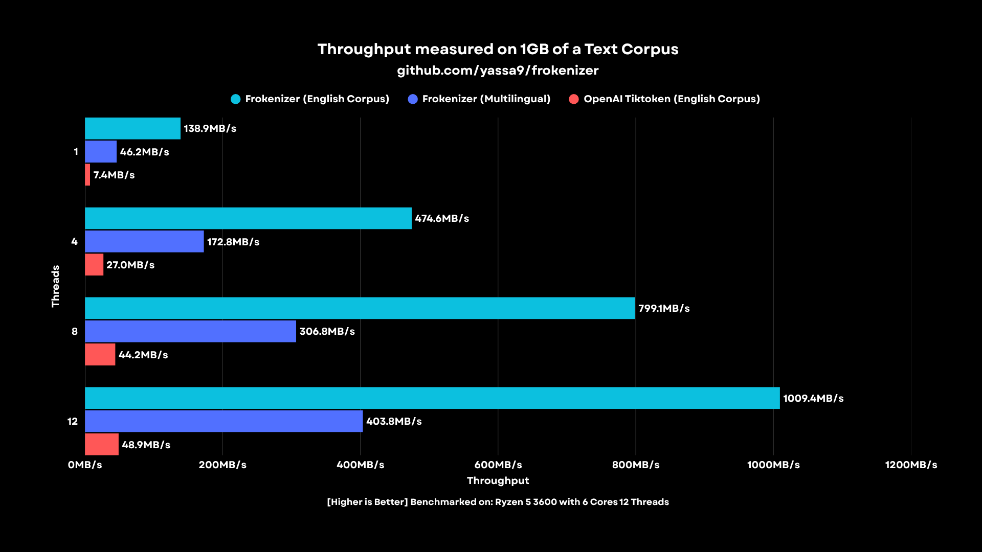 Frokenizer hits 1 GB/s Qwen tokenization