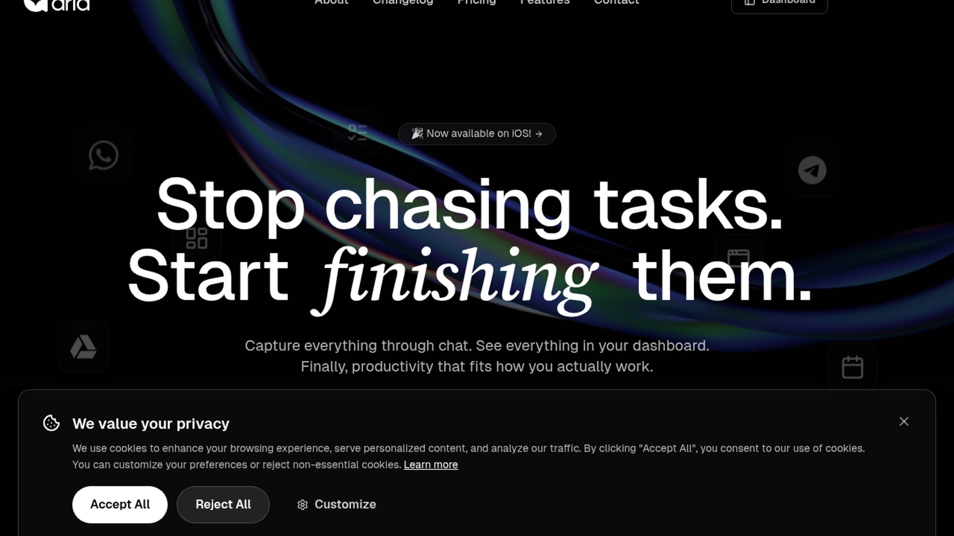 Hello Aria is an AI productivity assistant built around chat-first workflows, letting users create reminders, tasks, notes, meeting minutes, and file uploads from WhatsApp, Telegram, email, and its iOS and web surfaces. It leans into voice notes and natural language to reduce app switching while syncing with Google Calendar, Drive, Meet, Gmail, and Microsoft tools.