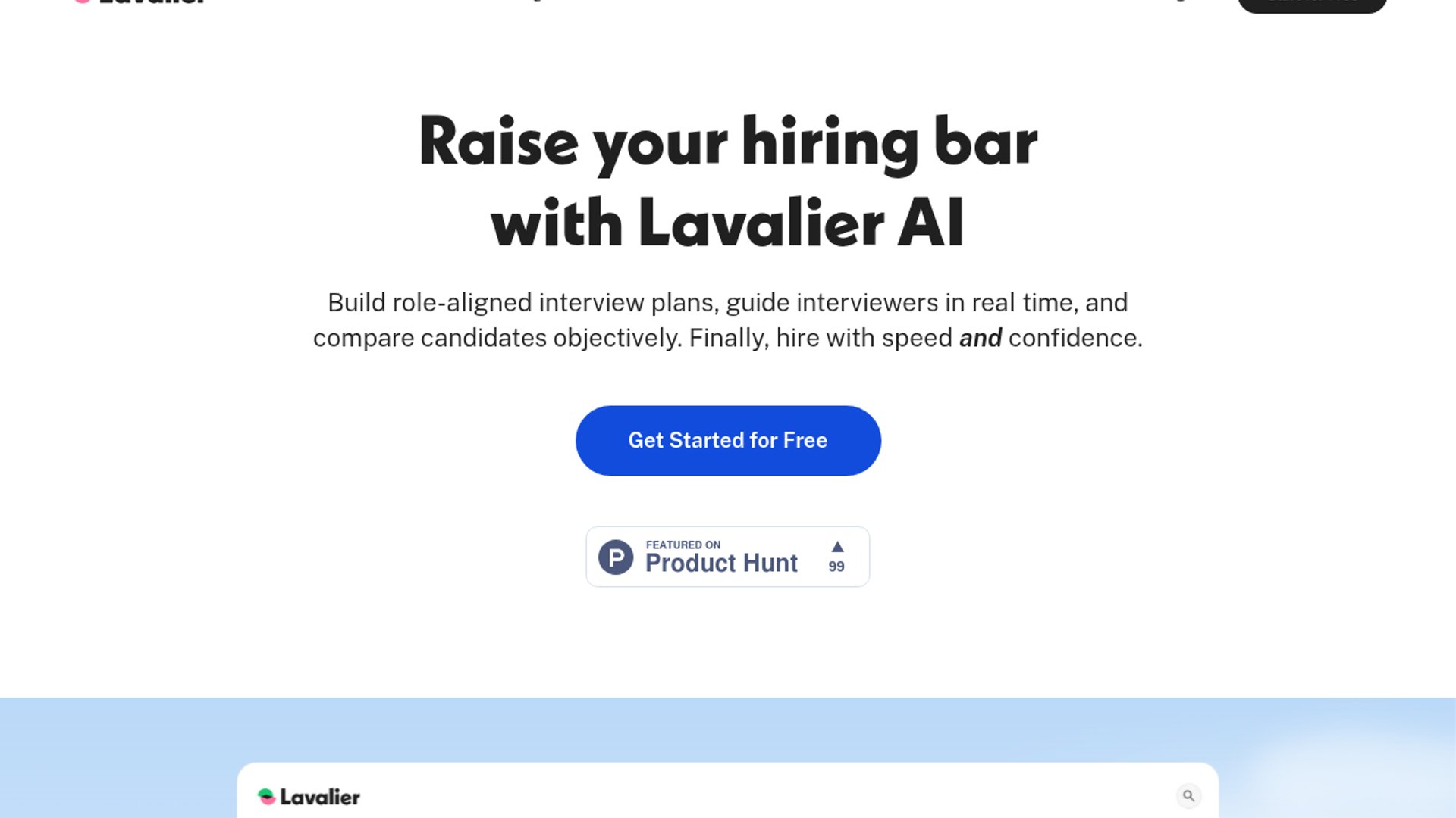Lavalier AI launched on Product Hunt with a startup-focused hiring platform that structures interviews, generates skill-based questions, and synthesizes candidate evidence. The pitch is better hiring decisions in less time by replacing inconsistent notes and gut-feel debriefs with comparable interview data.