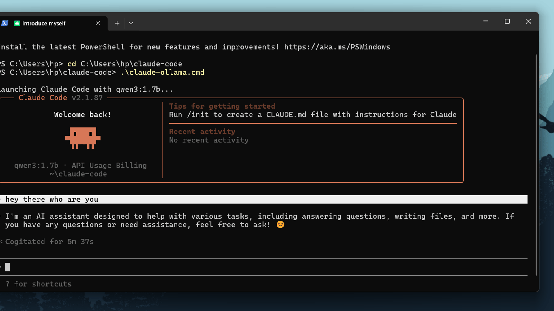 claude-codeollamalocal-llmwindowscoding-assistantopen-sourceterminal