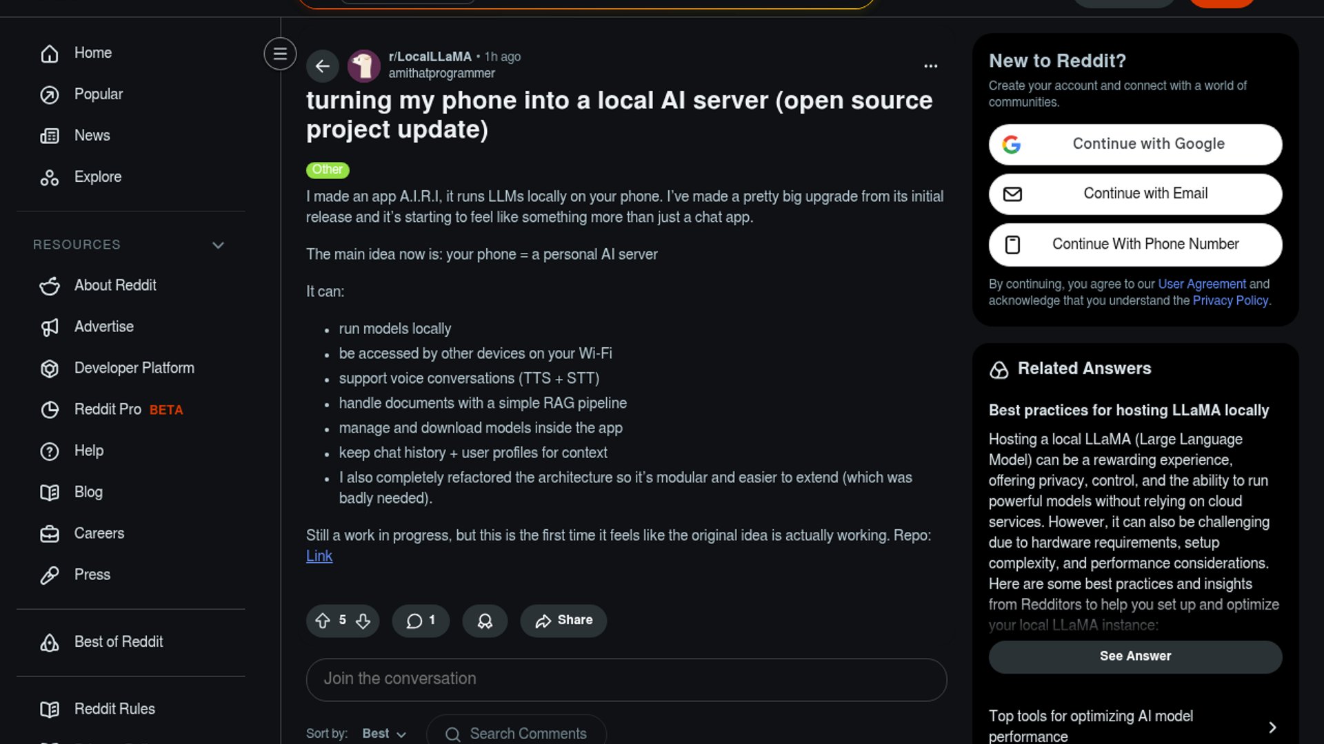 A.I.R.I (Artificial Intelligence, Real-time, In-app) is an open-source Flutter application that enables high-performance local LLM inference on mobile devices. It transforms smartphones into personal AI servers with support for voice, vision, and RAG.