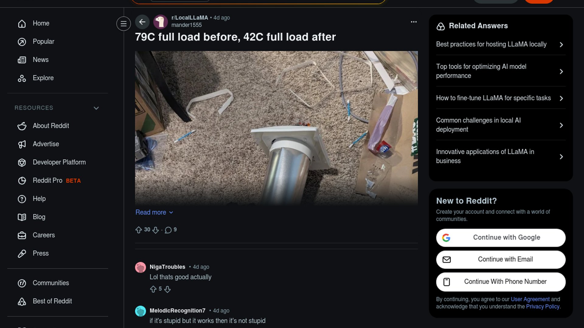 LocalLLaMA user drops temps 37°C with DIY ducting