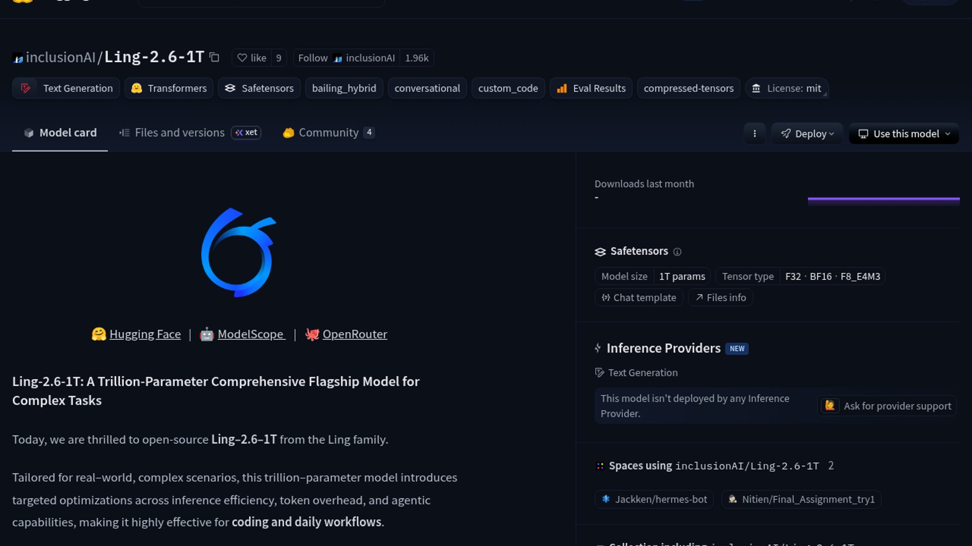 inclusionAI has open-sourced Ling-2.6-1T, a trillion-parameter Ling family model aimed at complex coding, tool use, and day-to-day agent workflows. The pitch is less about raw benchmark bragging and more about delivering flagship capability with lower token overhead and better inference efficiency.