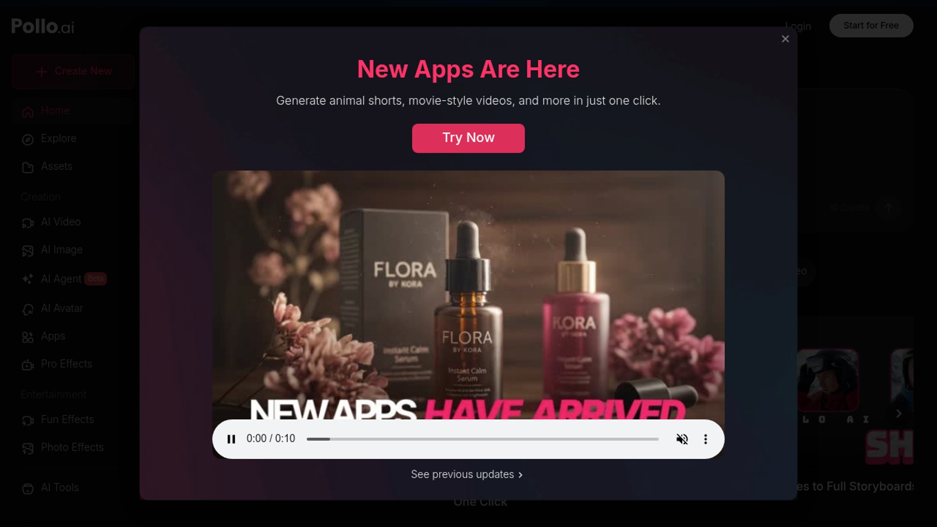 Pollo AI is an all-in-one AI video and image platform that turns text prompts, images, or clips into social-ready videos, avatars, and edits. Its homepage leans on free entry, broad model support, and creator-focused templates to make advanced video generation feel approachable.
