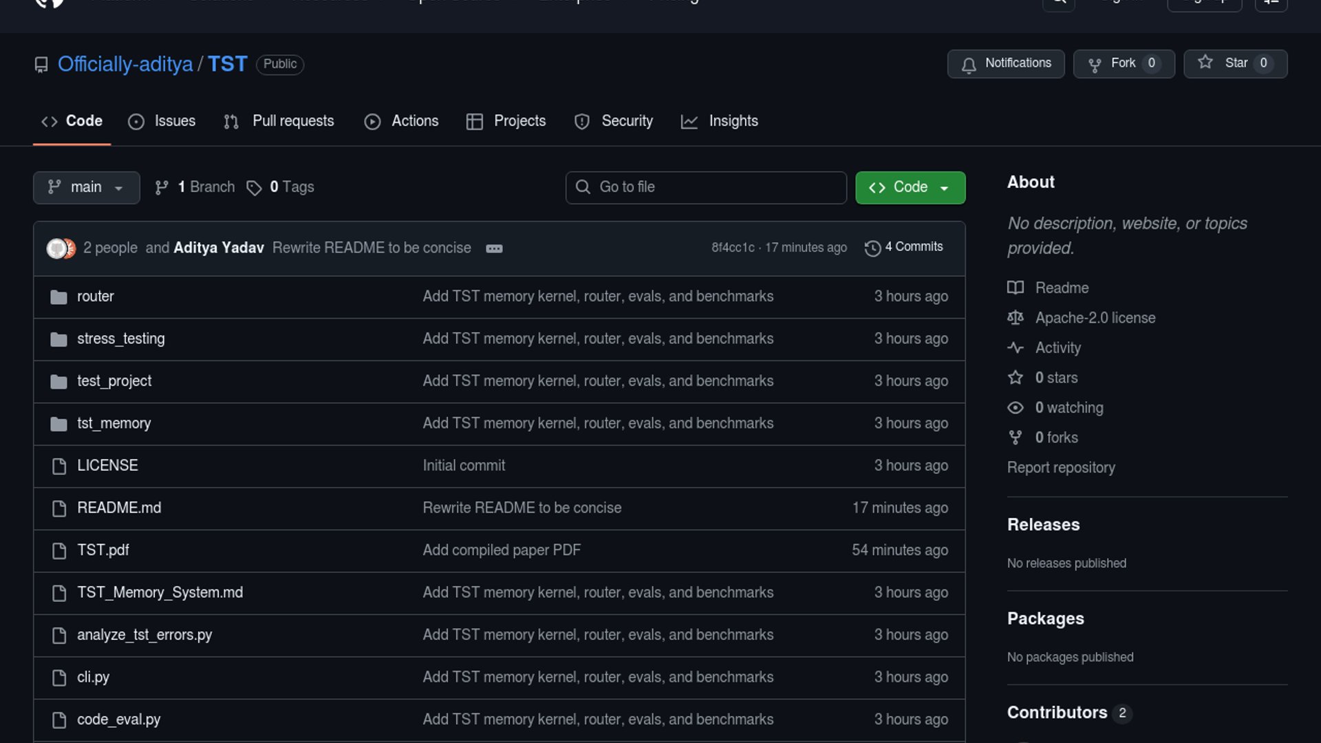 TST Memory System is an open-source Rust memory kernel for sub-1B language models that splits context into short-term memory, persistent trie-backed long-term memory, and DAG-based tree memory for code structure. The project’s pitch is that tiny local models can gain durable recall and cross-file awareness without retraining or a large memory footprint.