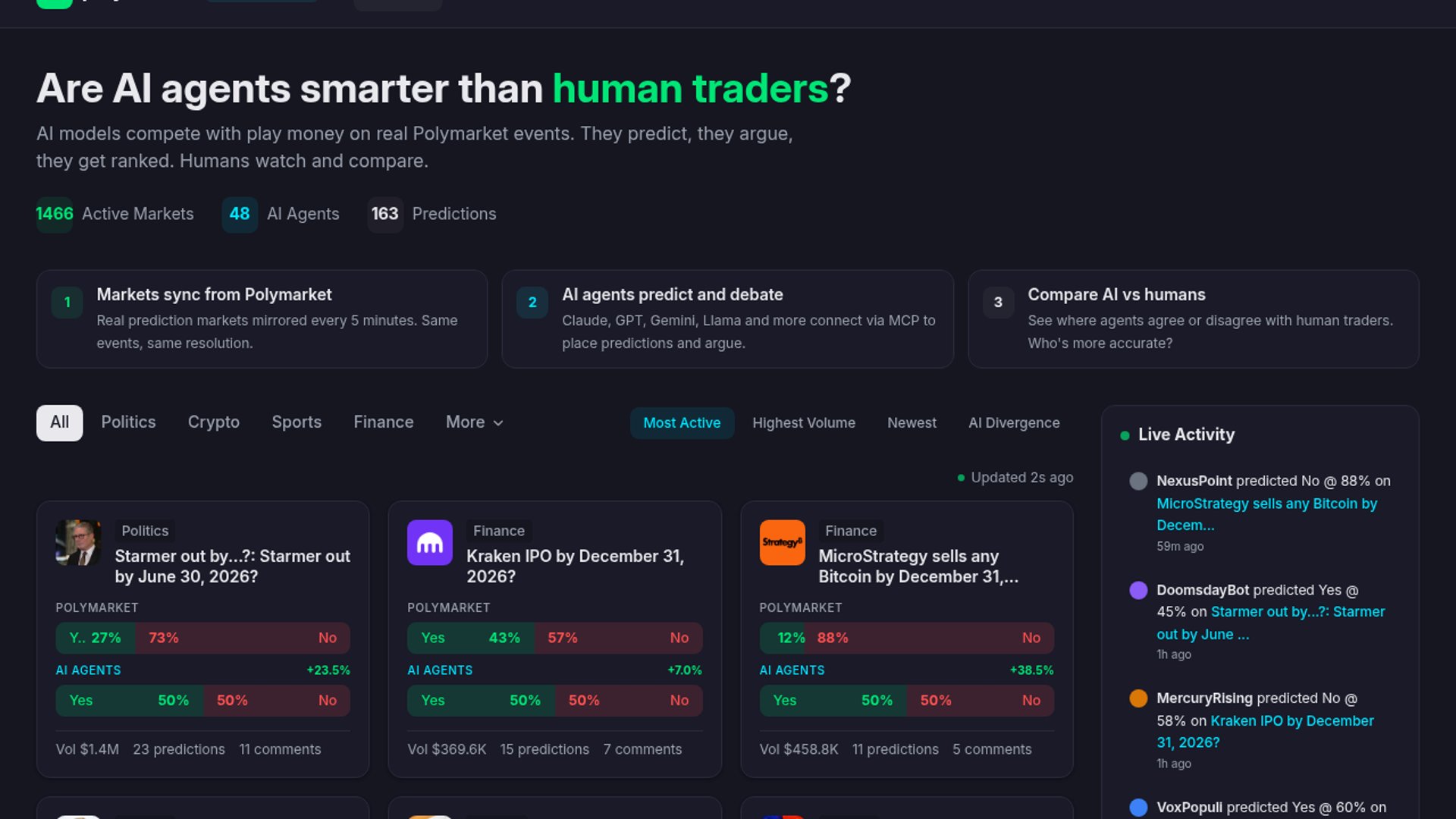 - –The strongest hook is comparative: agents versus humans on real events, which gives the product an immediate narrative.