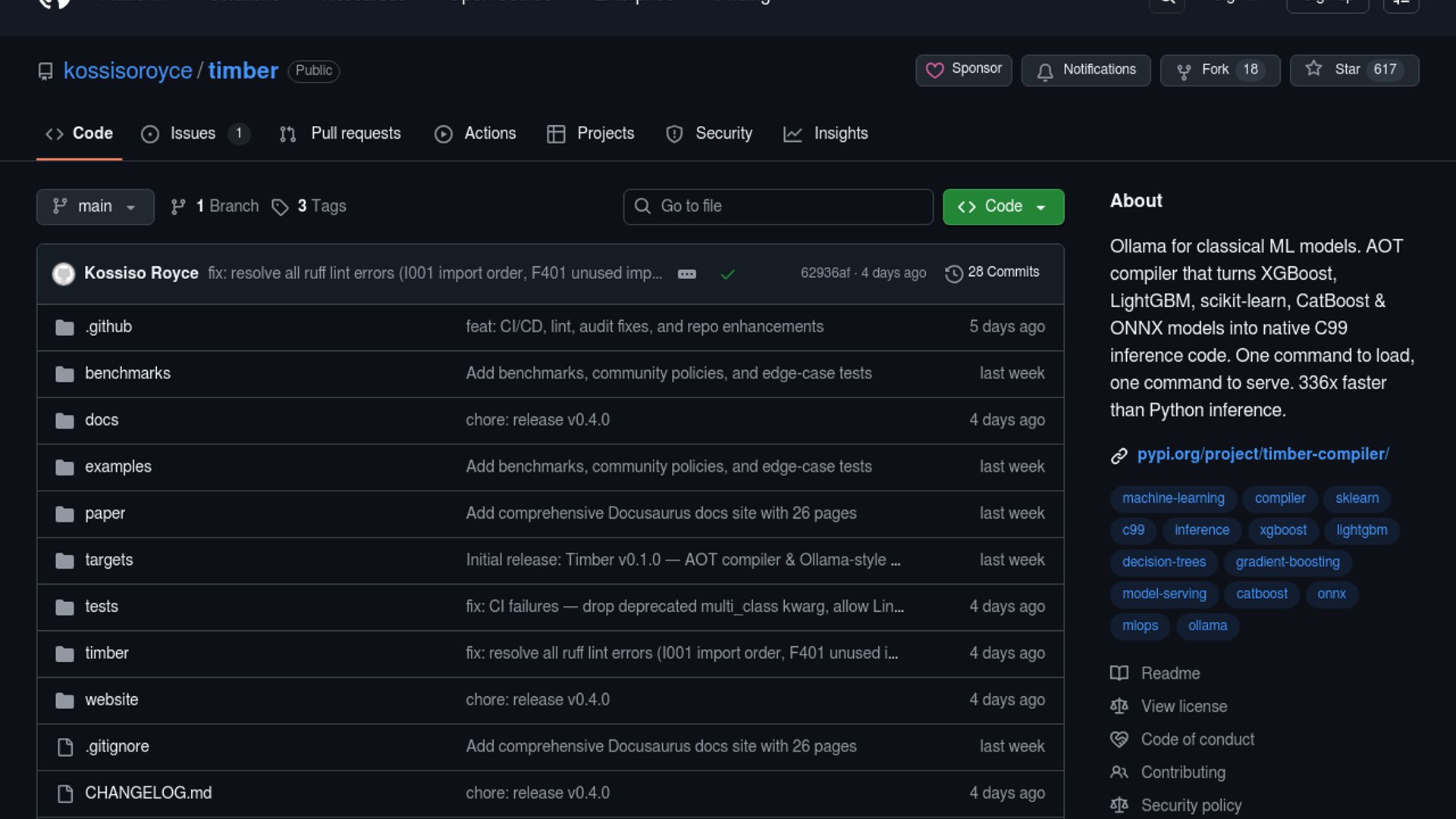 - –The real competitive angle is against ONNX Runtime and Treelite, with Timber differentiating via an optimizing compiler pipeline plus a built-in Ollama-style serving layer