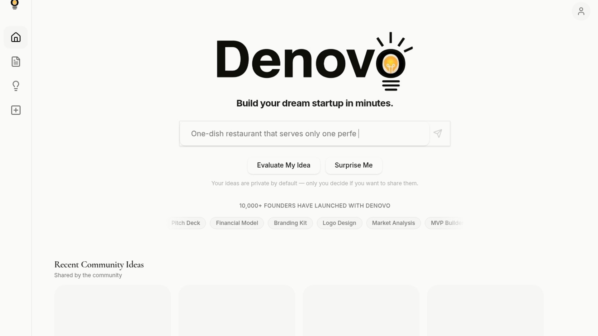 Denovo is an AI-powered startup builder that takes a raw idea and generates the core assets needed to launch a business, including a business plan, pitch deck, financial model, branding kit, promo video, and MVP web app. The company positions the product as an autonomous cofounder that can also help execute go-to-market work across marketing, outreach, and workflows, with integrations spanning tools like Slack, Gmail, GitHub, Instagram, Reddit, and LinkedIn.