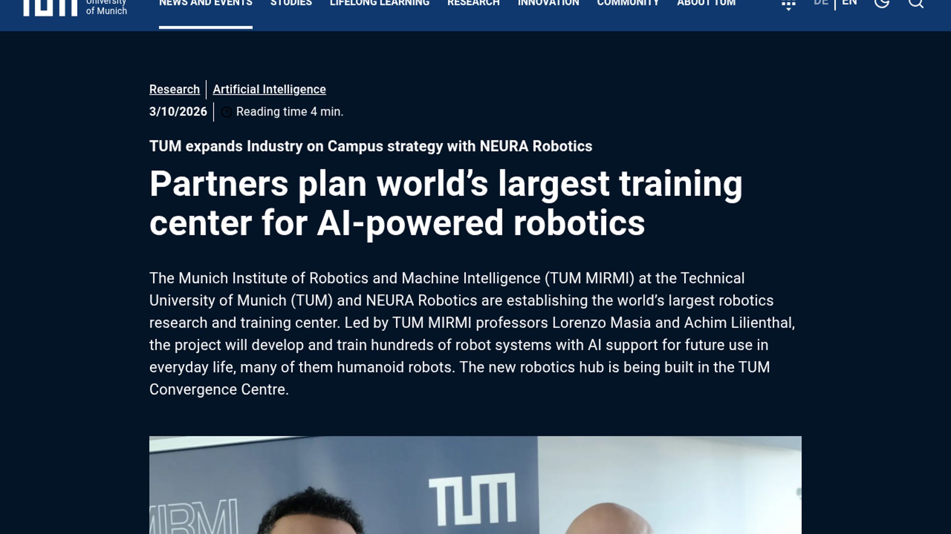 - –TUM brings academic credibility and experimentation capacity, while NEURA brings hardware deployment and the Neuraverse data layer.