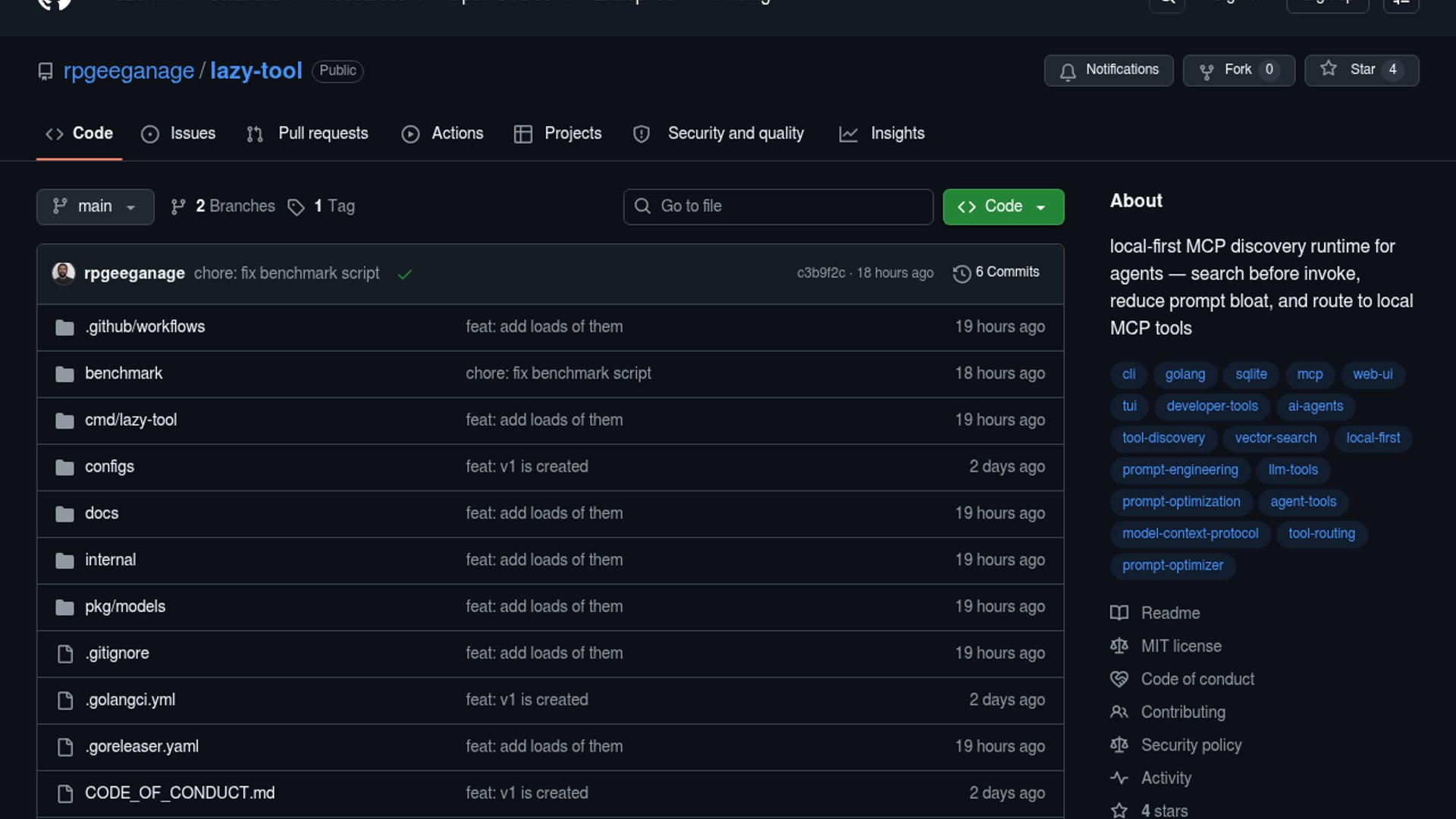 lazy-tool is a local-first MCP tool discovery runtime that keeps a local catalog of tools and surfaces only relevant ones at request time. It targets the prompt-bloat problem in MCP-heavy agent setups, especially for smaller local models and workflows with large tool inventories.