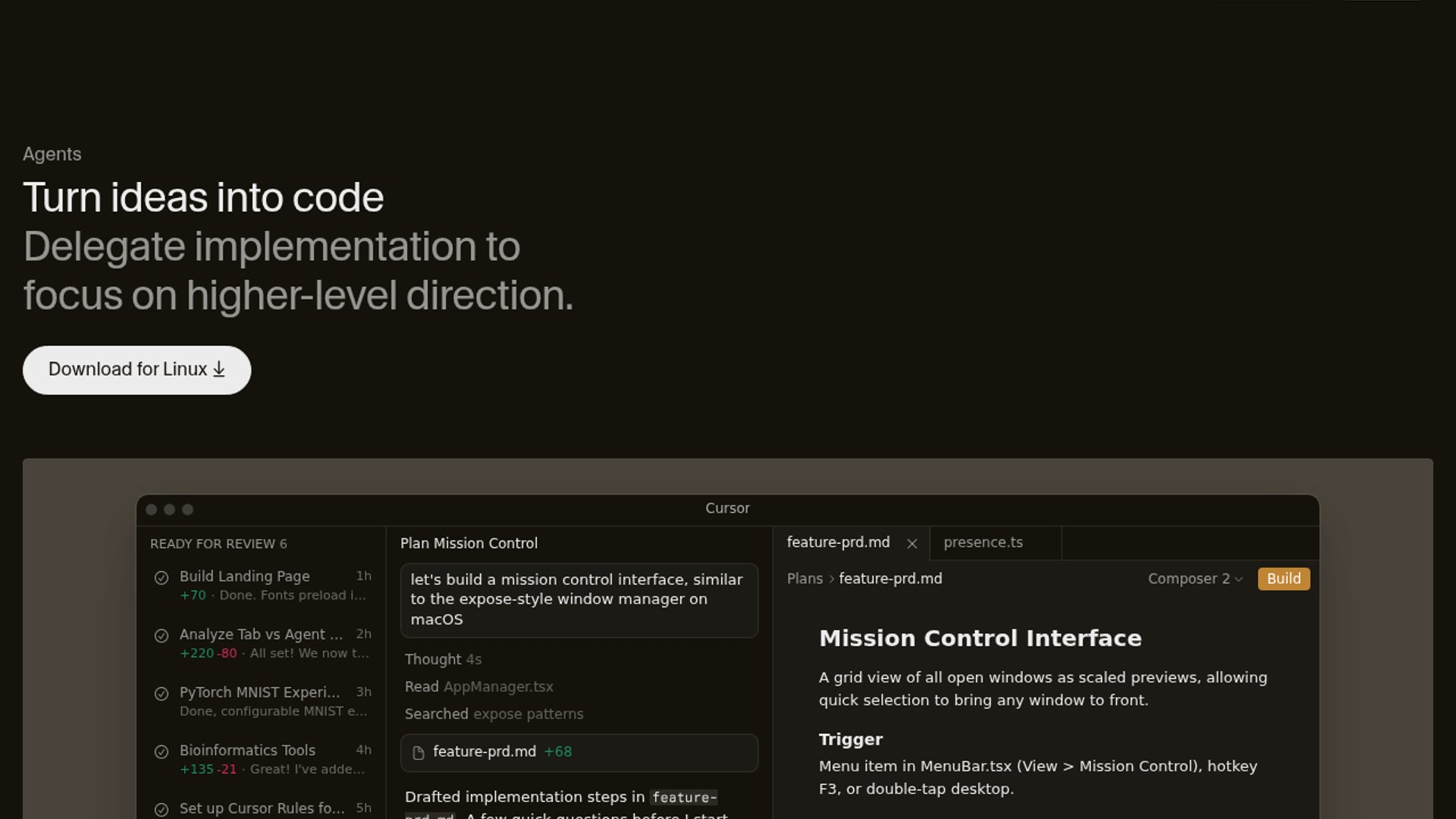 - –The multi-repo layout and PR-centric flow make Cursor feel closer to a coordination hub than a single-machine IDE.