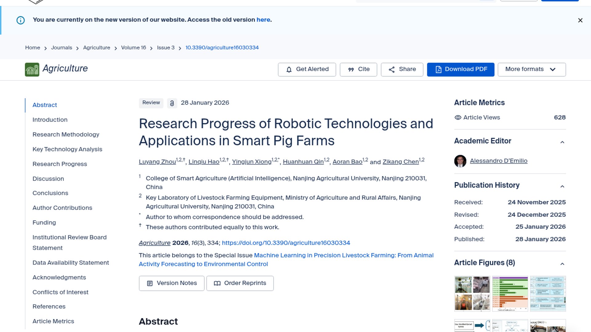 This MDPI review maps how AI, IoT, and robotics are moving into large pig farms for inspection, cleaning, and feeding. It frames automation as a response to labor shortages, disease control, biosecurity, and animal-welfare pressure.