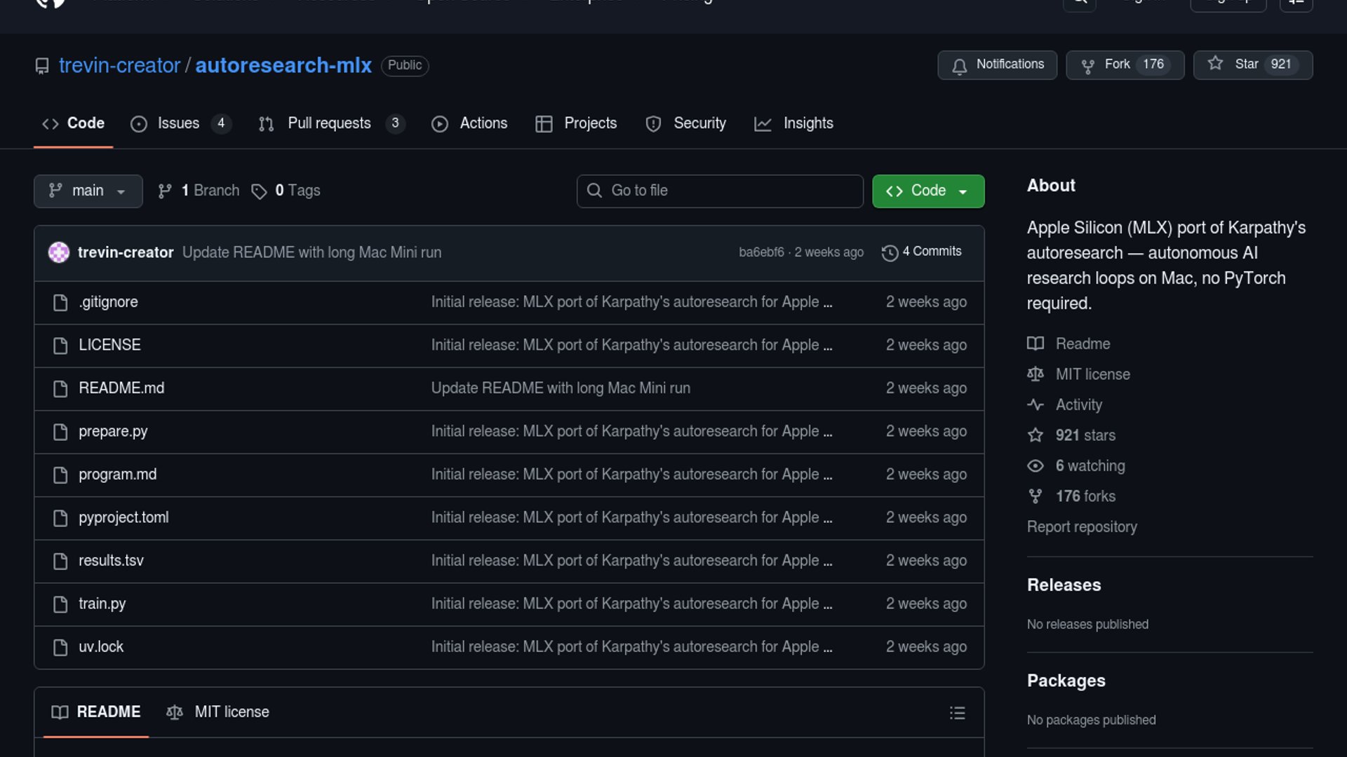 - –MLX removes the PyTorch/CUDA dependency, which makes autonomous research loops practical on Apple Silicon laptops and desktops.